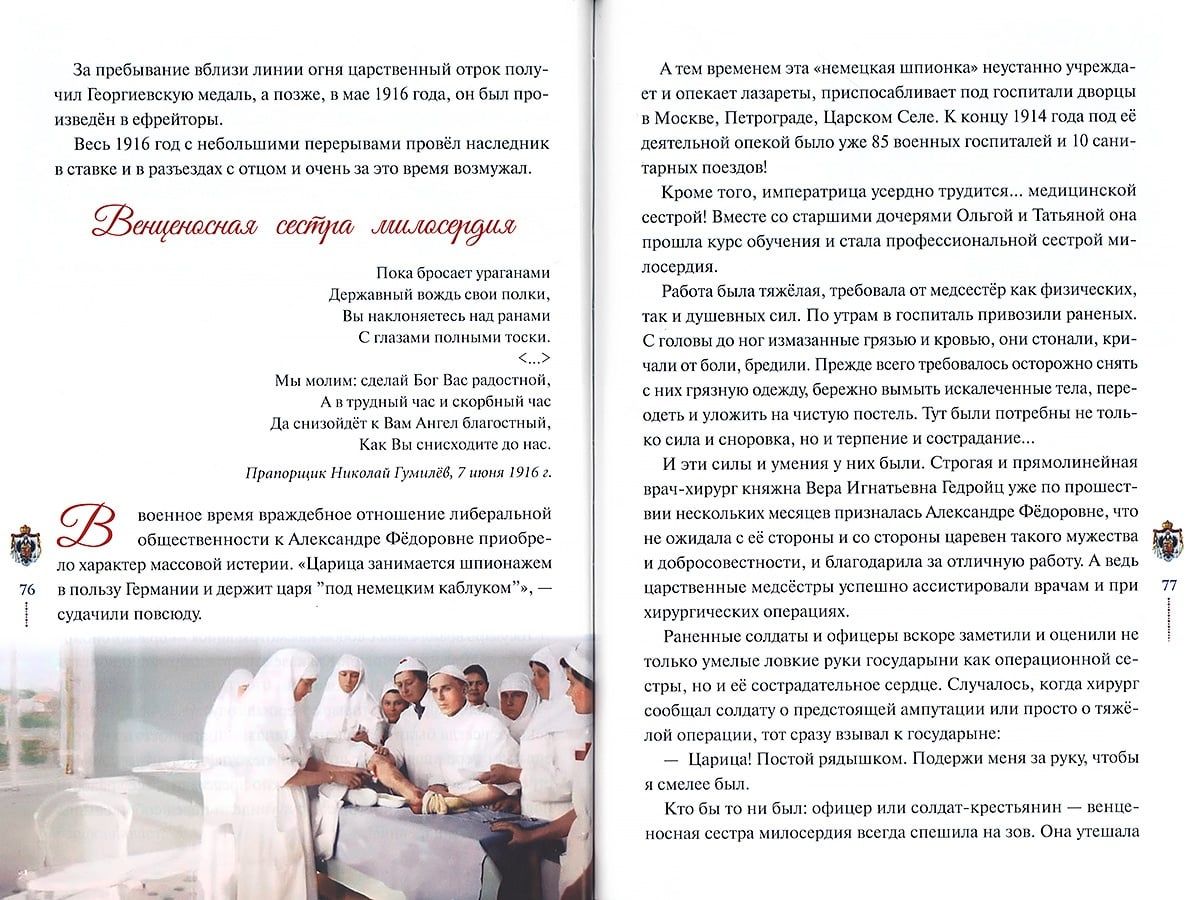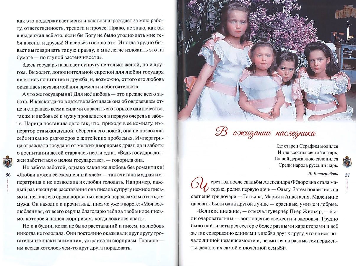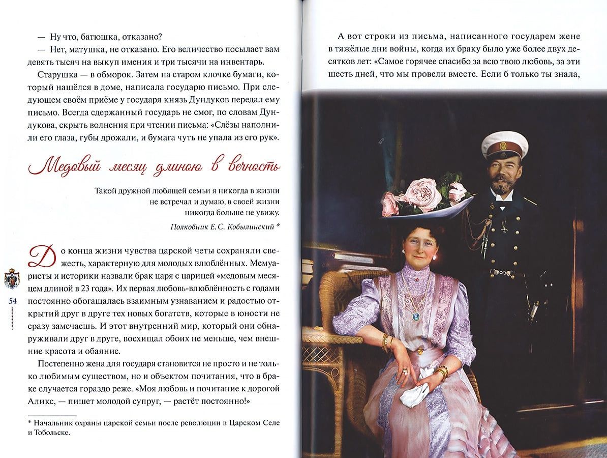 Grāmata stāsta par svēto karalisko ģimeni, par to, kā tās locekļi spēja dzīvē īstenot galveno Kristus bausli, kā viņi prata patiesi mīlēt Kungu, Baznīcu, Dzimteni, viens otru, savus padotos un piedot saviem ienaidniekiem.