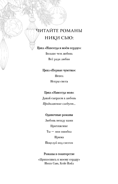 Niki Sjū romāni ir stāsti par pirmo mīlestību, dažreiz naivi un dramatiski, tomēr tīri, aizkustinoši un sirsnīgi. Visiem "no naida līdz mīlestībai" tropa cienītājiem, kā arī Emīlijas Grīnas, Asjas Lavrinovičas un Annas Džeinas darbu cienītājiem.