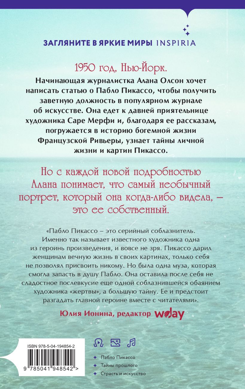 1950, Ņujorka. Aspirējošā žurnāliste Alana Olsone vēlas uzrakstīt rakstu par Pablo Pikaso, lai iegūtu kāroto vietu populārā mākslas žurnālā. Viņa dodas pie mākslinieka senas draudzenes Sāras Mērfijas un, pateicoties viņas stāstiem, ienirst bohēmas dzīves vēsturē Francijas Rivjērā, uzzina Pikaso personīgās dzīves un gleznu noslēpumus. Taču ar katru jaunu detaļu Alana saprot, ka neparastākais portrets, kādu viņa jebkad ir redzējusi, ir viņas pašas portrets.