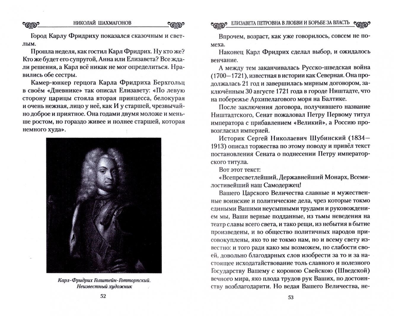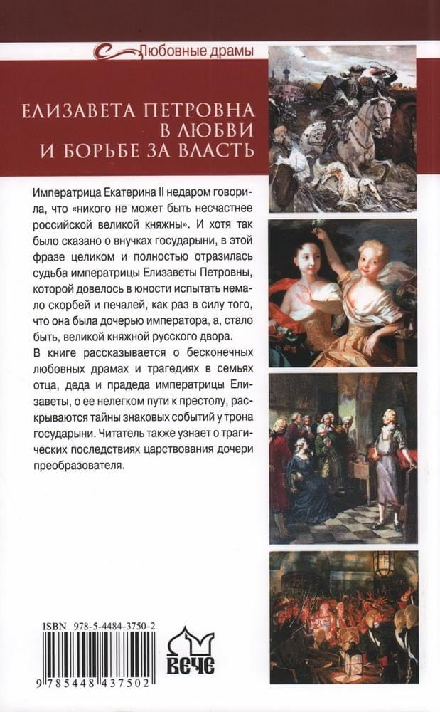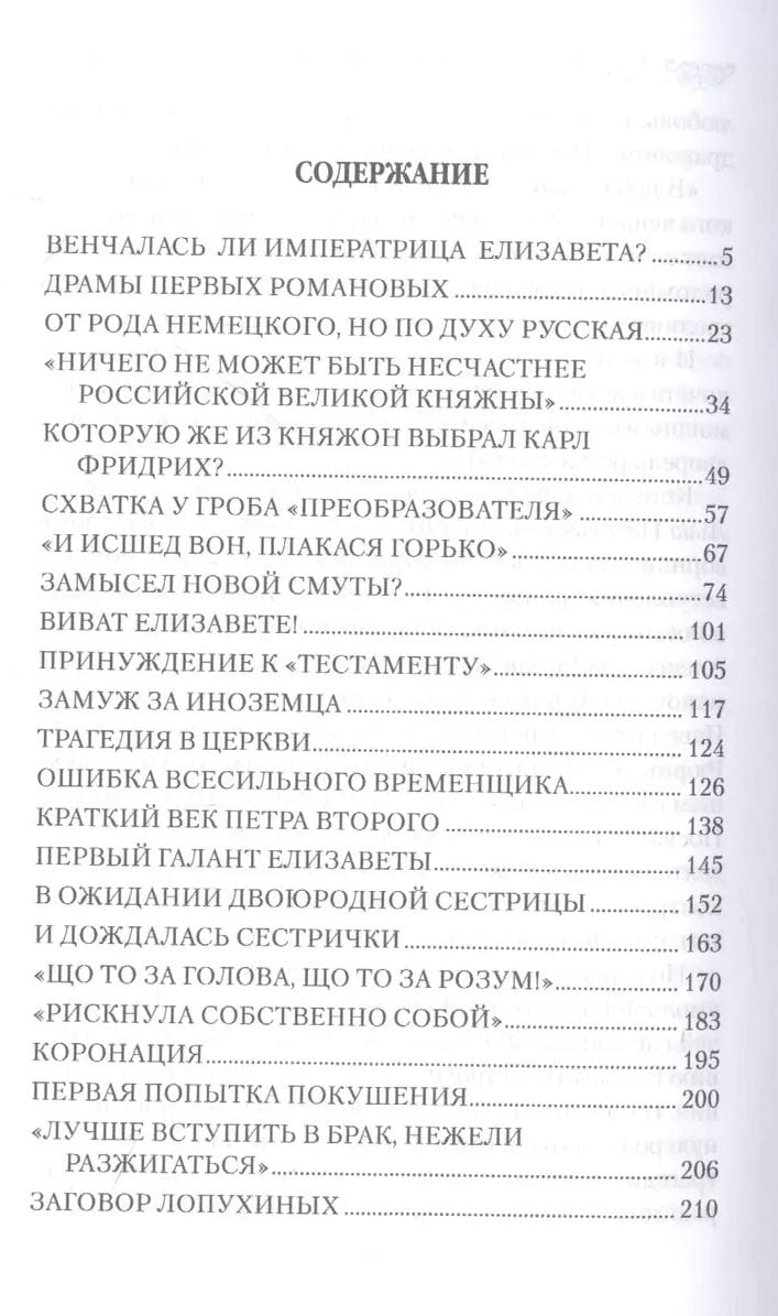 Grāmatā stāstīts par nebeidzamām mīlas drāmām un traģēdijām imperatores Elizabetes tēva, vectēva un vecvectēva ģimenēs, par viņas grūto ceļu uz troni, atklāti nozīmīgu notikumu noslēpumi pie imperatores troņa. Autore pieskaras vairākām traģiskām sekām, ko radīja pārveidotāja meitas valdīšana, kas satricināja Krieviju līdz pamatiem, viņas valdīšanas laikā samazināja Krievijas iedzīvotāju skaitu vismaz par trešdaļu un ieviesa nežēlīgas nāvessoda izpildes, kādas Krievija līdz šim nebija pieredzējusi.