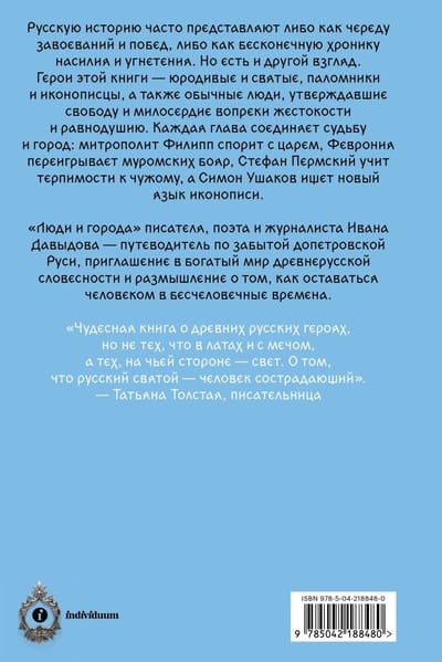 Rakstnieka, dzejnieka un žurnālista Ivana Davidova grāmata "Cilvēki un pilsētas" ir ceļvedis aizmirstajā pirmspetrīniskajā Krievzemē, ielūgums uz bagāto senkrievu literatūras pasauli un pārdomas par to, kā palikt cilvēcīgam necilvēcīgos laikos.