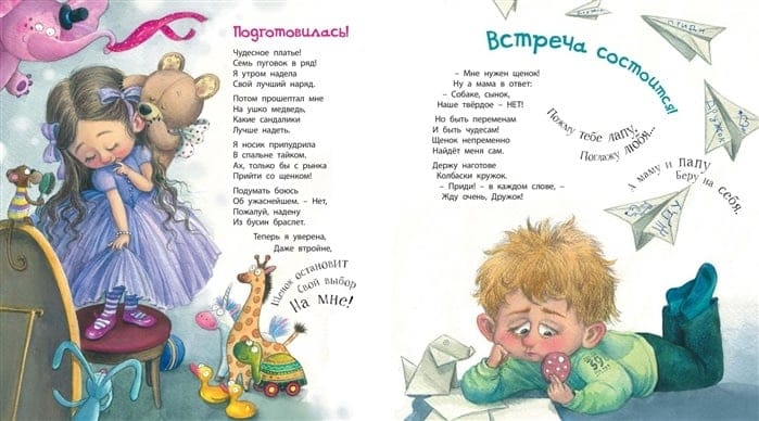 Daudzi bērni sapņo par īstu pūkainu laimi, kas var riekt vai miaukt, vicināt asti, pamosties no rīta un, protams, izrīkoties. Par kaķēnu vai kucēnu! Īpaši šādiem bērniem Jeļena Stepanova ir sacerējusi veselu grāmatu, kas ir pilna ar purnēšanu, riešanu, palaidnībām un jautriem stāstiem. Savukārt četrkājainos varoņus un viņu draugus ir zīmējusi brīnišķīgā māksliniece Ļubova Jeremina-Nošina.