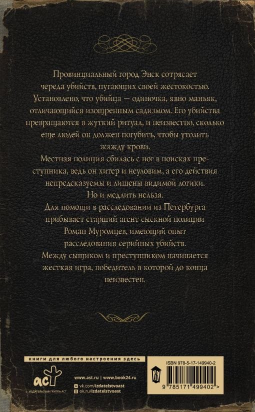 Enskas provinces pilsētu satricina virkne slepkavību, kas ir biedējošas savā nežēlībā. Ir noskaidrots, ka slepkava ir vientuļnieks, nepārprotami maniaks, kam raksturīgs izsmalcināts sadisms. Viņa slepkavības kļūst par šausminošu rituālu, un nav zināms, cik vēl cilvēku viņam jānogalina, lai remdētu savas asiņu slāpes.