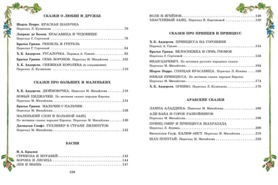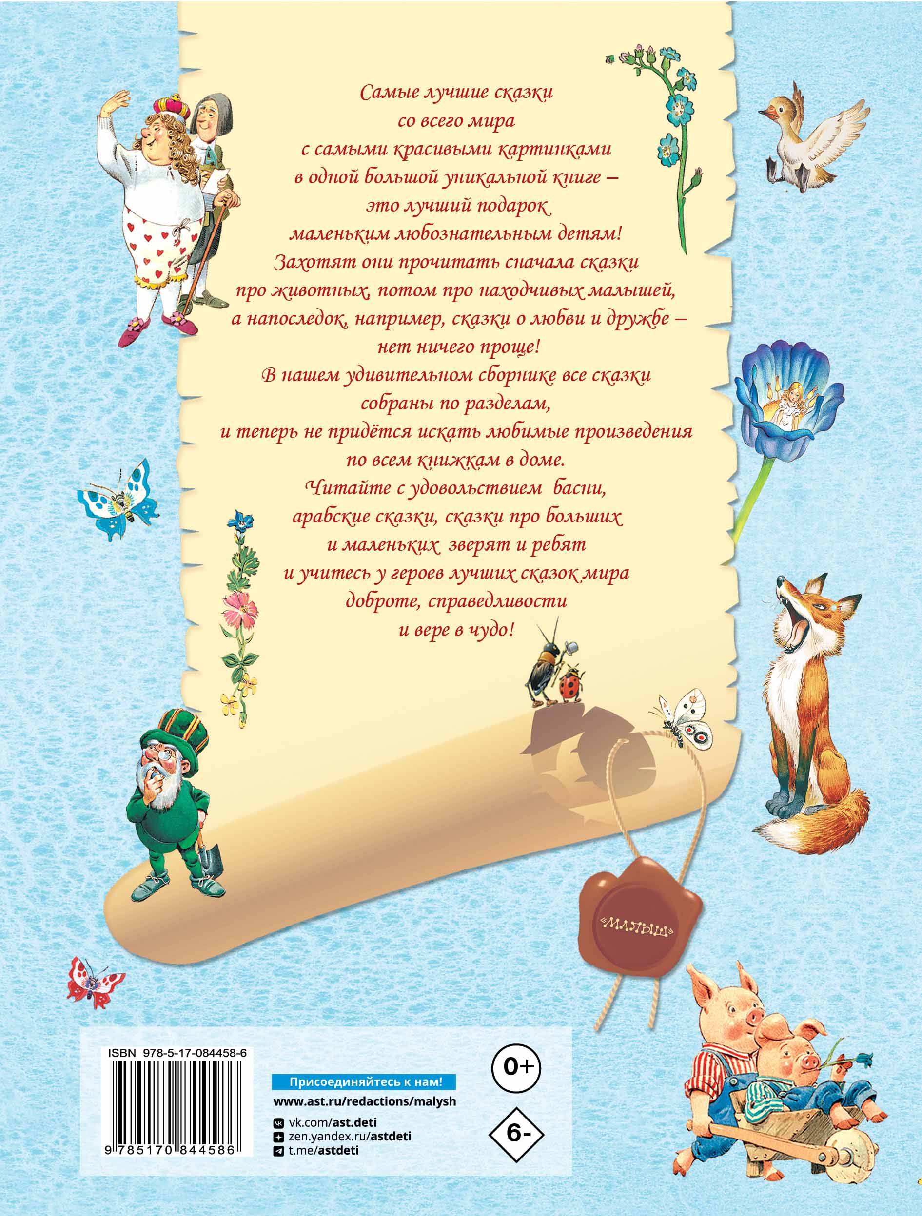 Slavenākās pasakas no atzītākajiem autoriem lielā grāmatā ar skaistām, košām ilustrācijām, ko veidojuši itāļu mākslinieki. Visas pasakas ir sadalītas tēmās: "Dzīvnieku pasakas", "Pasakas par gudrajiem un muļķīgajiem", "Pasakas par mīlestību un draudzību", "Pasakas par lielajiem un mazajiem", "Fabulas", "Pasakas par prinčiem un princesēm" un "Arābu pasakas". Mazajiem patiks uzzināt par trim mazajām sivēntiņām, Runci zābakos, Skaistuli un Briesmoni, Īkstīti un citiem pasaules bērnu literatūras varoņiem.