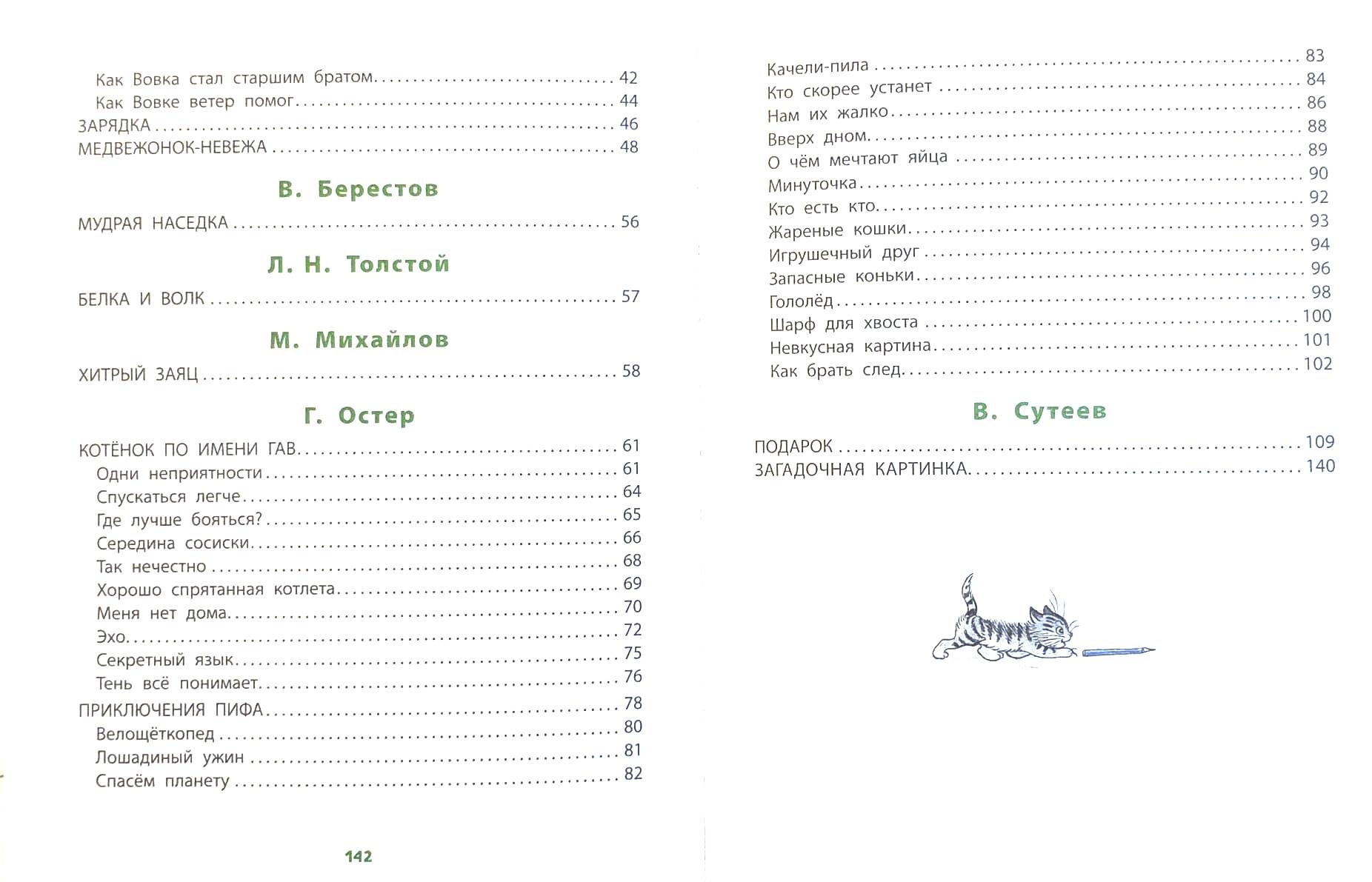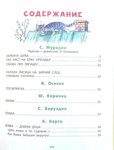 Grāmatā iekļautas retas V. Sutejeva ilustrācijas tautas skaitīšanas atskaņām "Lapsa uzbruka zaķa takai...", Ļeva Tolstoja fabulai "Vāvere un vilks", A. Barto dzejolim "Vingrinājums", V. Berestova dzejolim "Gudrā vista" un V. Osejevas dzejolim "Grāfs-dū".
