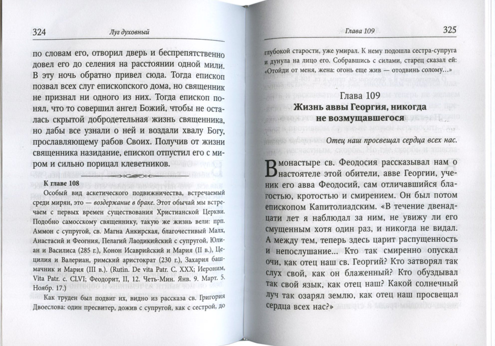 "Garīgā pļava" ir viens no nozīmīgākajiem Krievijā zināmajiem hagiogrāfiskajiem darbiem. Grāmatas 219 nodaļas satur ne tikai dažādu notikumu un providenciālu incidentu aprakstus, bet arī dvēseles glābšanas pārdomas, kas kalpo kā pamācība ikvienam pareizticīgajam kristietim. Šis izdevums kļūs par vērtīgu garīgās bagātināšanas un stiprināšanas avotu, ļaujot lasītājiem dziļāk izprast pareizticības pamatus un sekot Evaņģēlija baušļiem. Grāmatā ir ietvertas baznīcas svēto un askētu dzīves, kas ir spilgti piemēri mīlestībai pret Kristu un dzīvei saskaņā ar Viņa baušļiem.