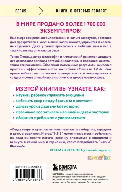Vēl vakar jūsu bērns bija jautrs un mīlīgs mazulis, bet šodien māja ir pārvērtusies par kara lauku: mazulis ir kaprīzs, spītīgs un pilnīgi nepaklausīgs. Pat visbrīnišķīgākās un mīlošākās mammas un tēti šādos apstākļos padodas. Tomass Felans, PhD un klīniskais psihologs, divdesmit gadus ir veltījis bērnu disciplīnas jautājumu izpētei un konsultācijām ar vecākiem. Apvienojot iegūtos rezultātus, viņš izveidoja vienkāršu un efektīvu audzināšanas metodi "Maģija 1-2-3". Šī metode pasargās jūs no mūžīgām ķildām un nepaklausības un radīs mierīgu, laimīgu un veselīgu atmosfēru ģimenē.
