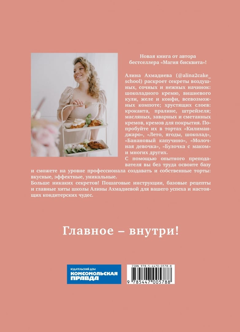 Jauna grāmata no bestsellera "The Magic of Biscuit" autores! Alina Akhmadieva (@alina2cake_school) atklās gaisīgu, sulīgu un maigu pildījumu noslēpumus: šokolādes krēms, ķiršu coulis, želeja un konfē, visu veidu kompots; kraukšķīgi slāņi: krokants, pralinē, strēmelīte; sviests, krēms un krējums, krēmi pārklājumam. Izmēģiniet tos kūkās "Kilimandžāro", "Vasara, ogas, šokolāde", "Banānu kapučīno", "Piena meitene", "Maizīte ar magoņu sēklām" un daudzās citās. Ar pieredzējuša skolotāja palīdzību jūs viegli apgūsiet bāzi un varēsiet izveidot savas kūkas profesionāļa līmenī: garšīgas, iespaidīgas, unikālas. Nekādu noslēpumu! Soli pa solim sniegtas instrukcijas, pamatreceptes un īsti Alinas Ahmadjevas skolas hiti jūsu panākumiem un īstiem konditorejas brīnumiem. Galvenais ir iekšā!