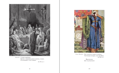 Šis divsējumu izdevums apvieno Viljama Šekspīra ikonisko traģēdiju "Makbets" ar visaptverošu ilustrētu albumu, kas atklāj tās gadsimtiem ilgo māksliniecisko vēsturi. Pirmajā sējumā iekļautas trīs lugas versijas krievu valodā: jauns G. M. Kružkova tulkojums un B. L. Pasternaka un Ju. B. Korņejeva klasiskās interpretācijas. Katram darbam ir savs mākslinieciskais noformējums, padarot lasīšanu par patstāvīgu estētisku pieredzi. Sējuma zinātniskajā aparātā iekļauti A. N. Gorbunova, N. E. Mikeladzes un E. A. Pervušinas raksti, kā arī plaši V. S. Makarova komentāri. Tie iegremdē lasītāju traģēdijas vēsturiskajā, kultūras un literārajā kontekstā: Šaujampulvera sazvērestības laikmetā, reliģiskās spriedzes atmosfērā, demonoloģijas tradīcijās, sižeta avotos un krievu uztveres īpatnībās trīs gadsimtu garumā.