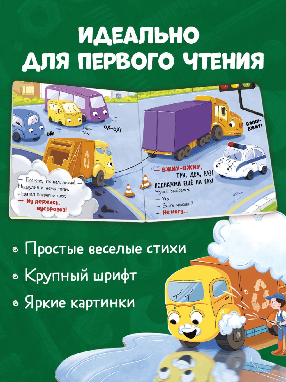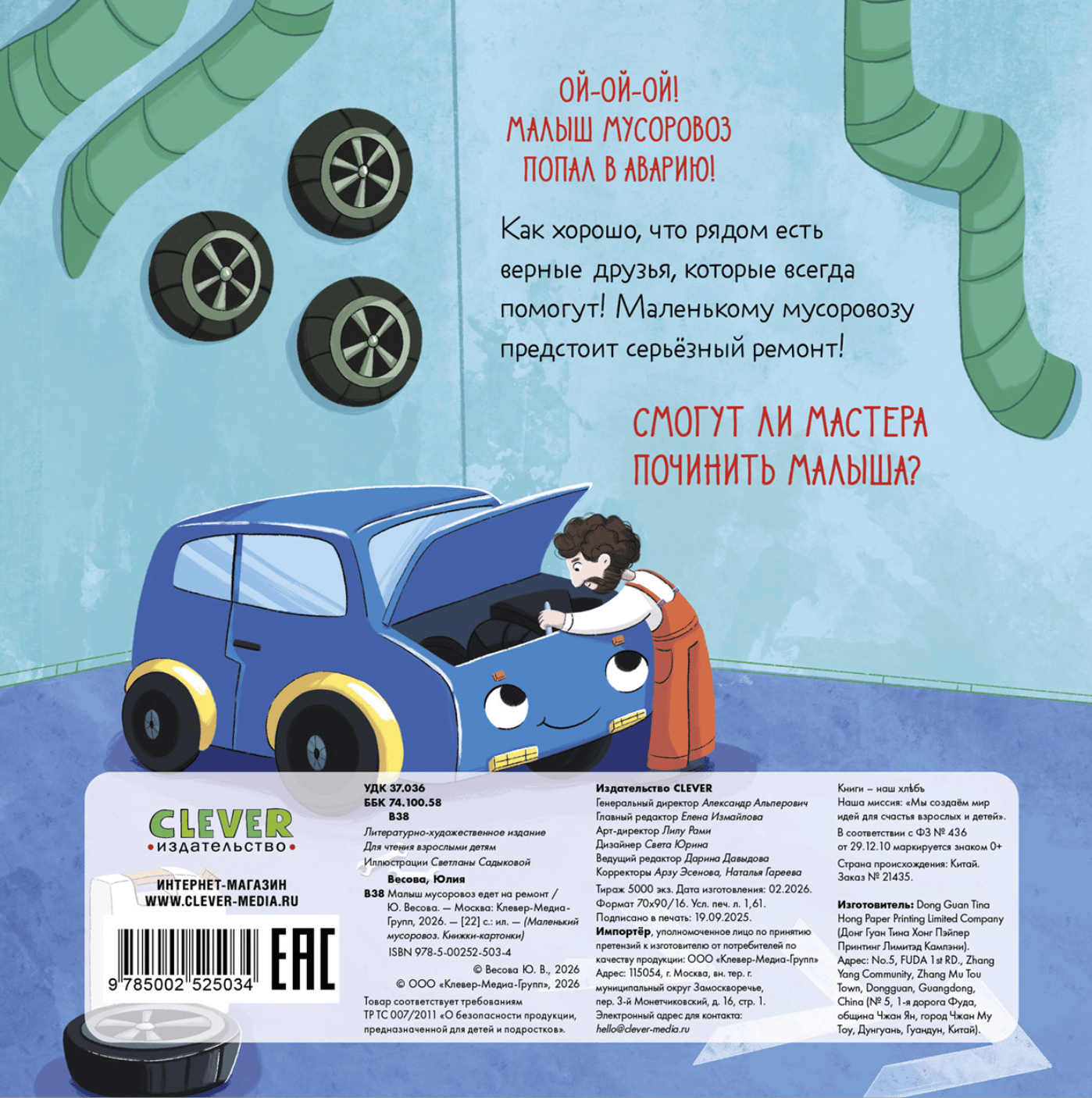"Mazā atkritumu mašīna dodas uz remontdarbnīcu" ir jautrs stāsts pantos, ko sarakstījusi Jūlija Vesovaja, ar košām, saistošām ilustrācijām.
