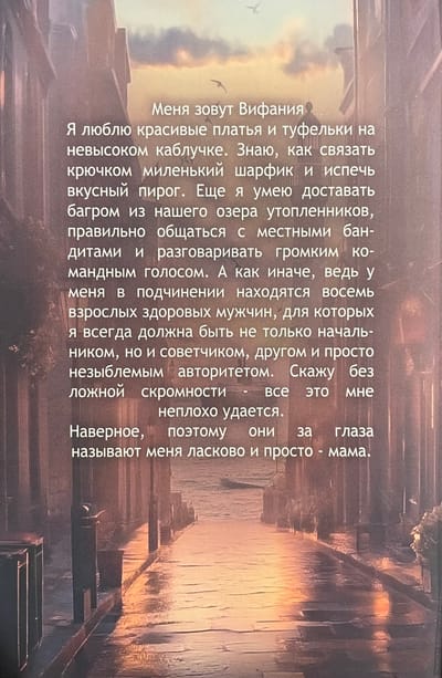 Mani sauc Betānija. Man patīk skaistas kleitas un zempapēžu kurpes. Es protu uztamborēt skaistu šalli un cept gardu pīrāgu. Es arī protu ar laivas āķi izvilkt noslīkušus ķermeņus no mūsu ezera, pareizi sazināties ar vietējiem bandītiem un runāt skaļā, pavēlošā balsī.