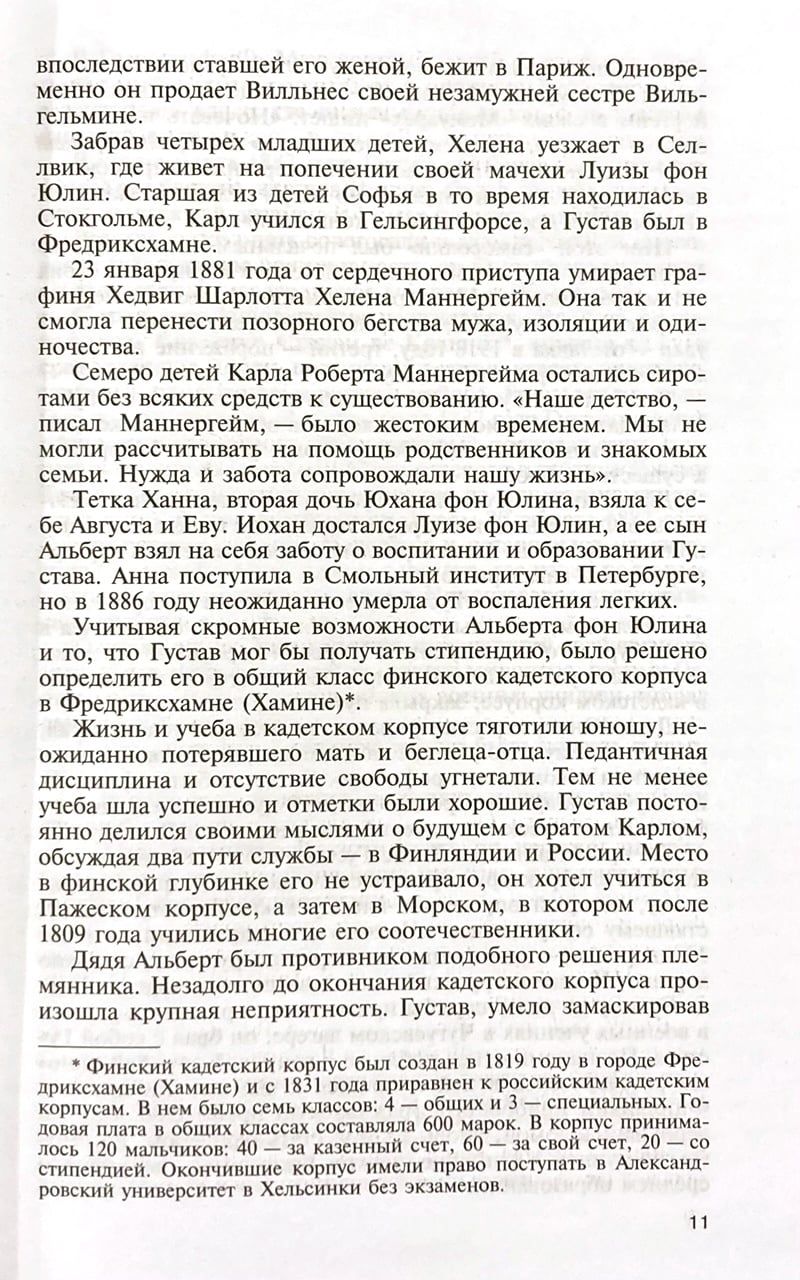 Grāmatas autors profesors Leonīds Vasiļjevičs Vlasovs, pamatojoties uz daudziem dokumentiem, pārliecinoši pierāda, ka maršals un Somijas prezidents Karls Gustavs Mannerheims (1867-1951) neietilpst lielo ļaundaru pulkā un pieder ne tikai Somijas vēsturei. Spožs virsnieks, kurš trīsdesmit gadus uzticīgi un patiesi kalpoja Krievijas impērijai, viņš atstāja neizdzēšamas pēdas Krievijas armijas militārajā pagātnē. Paradoksāli, bet, cīnoties ar Padomju Savienību, viņš nebija Krievijas ienaidnieks.