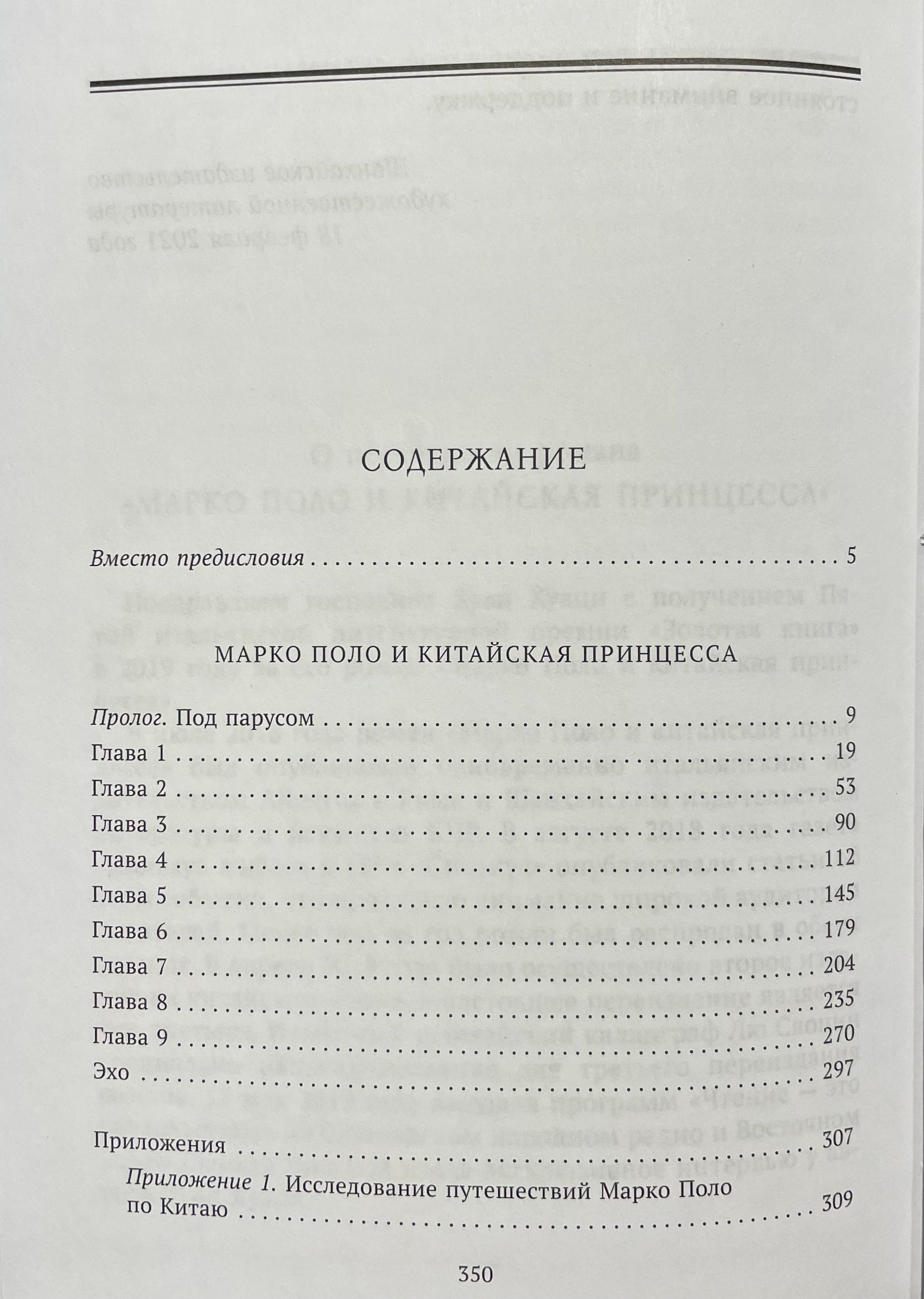 "Marko Polo un ķīniešu princese" ir romantisks stāsts ar leģendas pieskaņu. Uz kuģa "Princess", bīstama jūras piedzīvojuma, atrodas Juaņu dinastijas princese Kokačina, kurai lemts apprecēties ar Arghunu, ceturto Ilhanu no Ilhanu dinastijas. Pēc Juaņu imperatora Kublaihana pavēles itālis Marko Polo tiek nosūtīts pavadīt viņu uz šo tālo zemi. Tas bija garš jūras ceļojums. Marko Polo un princese Kokačina pavadīja kopā divus gadus un divus mēnešus, katru dienu sastopoties ar vētrām un neredzamiem jūras briesmoņiem, cīnoties ar tiem. Viņi satuvinājās sarunu ceļā, un, pirms viņi to aptvēra, viņu vidū uzplauka pieķeršanās.