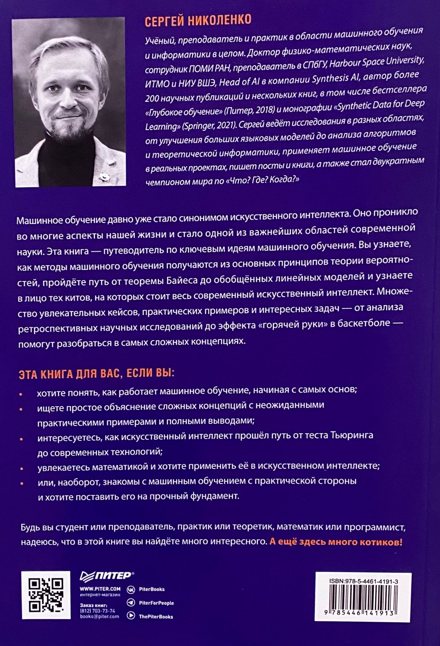 Mašīnmācība jau sen ir bijusi mākslīgā intelekta sinonīms. Tas ir iekļuvis daudzos mūsu dzīves aspektos un ir kļuvis par vienu no svarīgākajām mūsdienu zinātnes jomām. Šī grāmata ir mašīnmācīšanās galveno ideju ceļvedis. Jūs uzzināsiet, kā mašīnmācīšanās metodes tiek atvasinātas no varbūtību teorijas pamatprincipiem, pāriesiet no Beijesa teorēmas uz vispārinātiem lineāriem modeļiem un iepazīsiet vaļu sejas, uz kurām balstās viss mūsdienu mākslīgais intelekts. Dažādi aizraujoši gadījumi, praktiski piemēri un interesantas problēmas - no retrospektīvu zinātnisku pētījumu analīzes līdz "karstās rokas" efektam basketbolā - palīdzēs izprast vissarežģītākos jēdzienus. Turklāt grāmata var būt par pamatu mašīnmācības pamatkursiem.