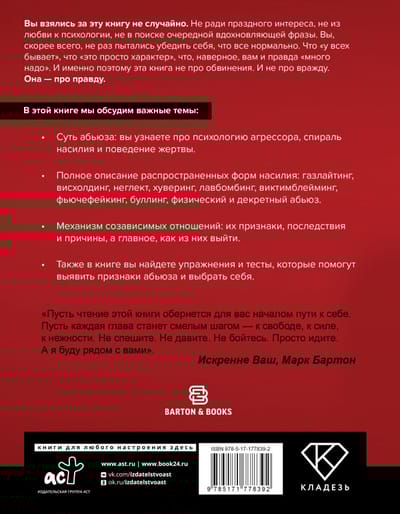 Jūs šo grāmatu nepaņēmāt nejauši. Ne tukšas ziņkārības, ne mīlestības pret psiholoģiju, ne meklējot nākamo iedvesmojošo frāzi. Jūs, iespējams, vairāk nekā vienu reizi esat mēģinājuši pārliecināt sevi, ka viss ir normāli. Ka "visiem gadās", ka "tā ir tikai jūsu personība", ka varbūt jums tiešām vajag "pārāk daudz". Un tāpēc šī grāmata nav par apsūdzībām. Vai naidīgumu. Tā ir par patiesību.