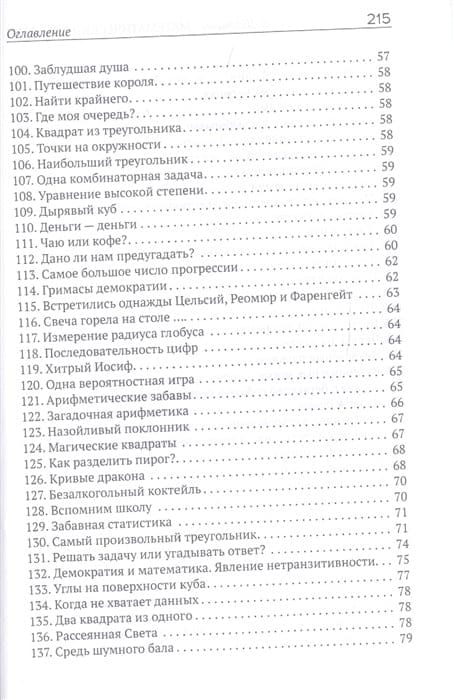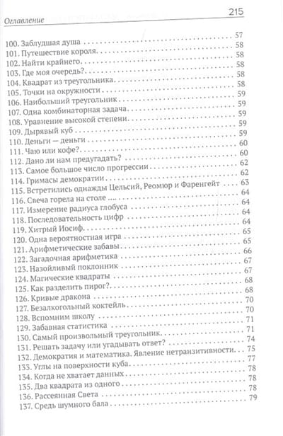Kā saskaitīt visas zivis dīķī, nevienu no tām nesasitot? Kāpēc kanalizācijas akas ir apaļas? Vai ir iespējams pareizi noteikt laiku pēc pulksteņa ar vienādām rokturiem? Vai daudzstūri, kuram nav taisno leņķu, var pārklāt ar kvadrātiem? Tā ir tikai neliela daļa no aizraujošajiem un asprātīgajiem jautājumiem, kas apkopoti šajā grāmatā. To visu - kopā ar interesantiem vienādojumiem, aritmētikas un ģeometrijas uzdevumiem - ir ne mazāk kā divi simti. Tajā pašā laikā neviens no šiem uzdevumiem nav domāts īstiem matemātiķiem: lai tos atrisinātu, jums vajadzīga tikai atjautība, vērība un nedaudz brīvā laika. Bet cik daudz priekšrocību! Jūs atcerēsieties (vai beidzot atcerēsieties!) matemātikas pamatlikumus, vingrināsiet smadzenes, izklaidēsieties un uzzināsiet daudz vēsturisku faktu no matemātikas pasaules. Ilustrācijas un detalizētas atbildes un risinājumi ir pievienoti.