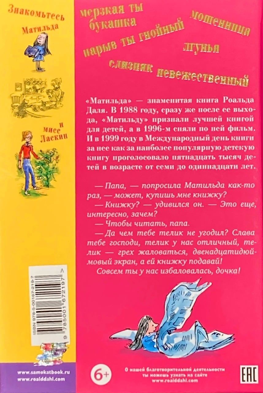 Matilda ir maza un ļoti gudra meitenīte. Ļoti, ļoti gudra. Viņa iemācījās lasīt trīs gadu vecumā un mīl grāmatas vairāk par visu. Un ne tikai bērnu pasakas, bet arī Dikensu, Hemingveju, Steinbeku un Kiplingu. Bet diemžēl tas nav pa prātam viņas vecākiem, diviem diezgan nepatīkamiem cilvēkiem, kuri labprātāk gribētu, lai viņa skatās, tāpat kā viņi, muļķīgas programmas televīzijā. Un mazo Matildi skolā gaida nepatikšanas, jo iestādes direktore ienīst bērnus un nežēlīgi viņus spīdzina. Bet, par laimi, Matildas skolotāja ir ārkārtīgi laipna un uzmanīga pret viņu. Turklāt Matilda pēkšņi atklāj pārdabiskas spējas... Tāpat kā citos slavenā Roalda Dalla stāstos, arī "Matildā" viņš izsmej muļķību un šaurību un ļauj uzvarēt prātam un taisnīgumam. Un liek smieties gan bērniem, gan pieaugušajiem. Gudrus pieaugušos, protams.