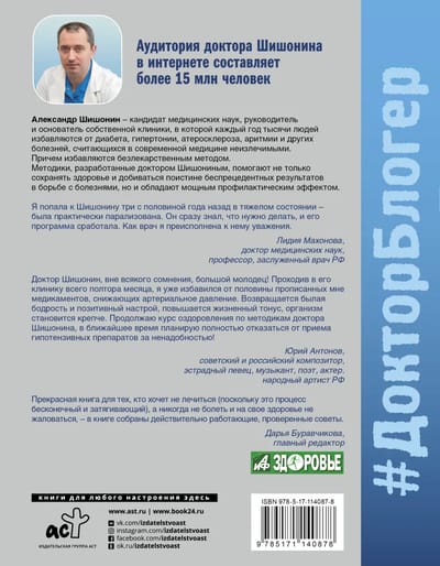 Slavenā Maskavas ārsta grāmatā stāstīts par hipertensijas, aterosklerozes, diabēta un citu hronisku slimību patiesajiem cēloņiem, kuras mūsdienu medicīna uzskata par neārstējamām, bet kuras Šišonina klīnikā veiksmīgi ārstē ar bezrecepšu metodi. Autora paradoksālais skatījums uz cilvēka organismu ļaus lasītājam atrast pareizo ceļu uz veselību.