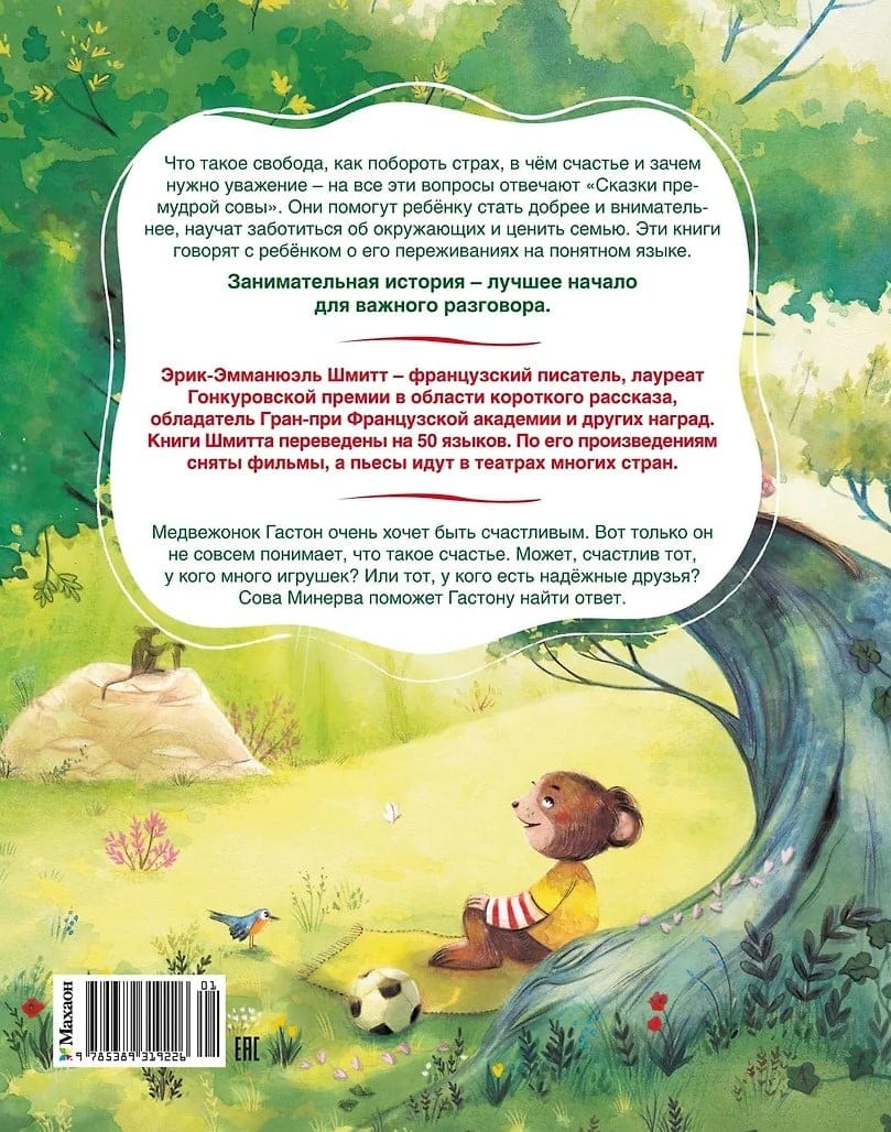 "Gudrās pūces stāsti" ir Ērika Emanuela Šmita pirmie darbi jaunajiem lasītājiem, kas radīti emocionālās inteliģences veicināšanai. Filozofu putns Minerva kļūs par labāko draudzeni bērniem un viņu vecākiem, palīdzot viņiem atbildēt uz svarīgākajiem jautājumiem.