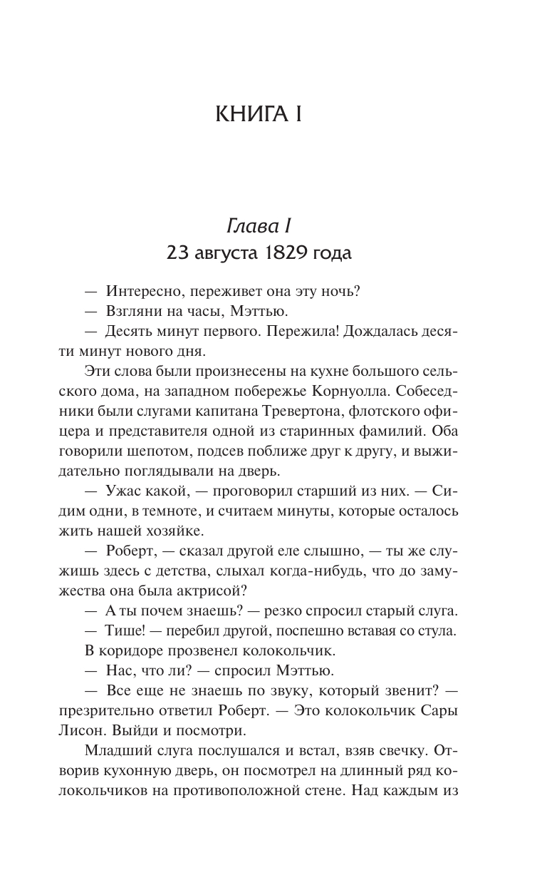 1829. gada vasaras naktī Kornvolas krastā ielūza vecā savrupmāja, klausoties saimnieces – lēdijas Trevertonas – pēdējo elpu, kura pameta mirstīgo pasauli un atstāja savu nesamierināmo vīru, mazo meitu Rozamondu un daudzus jautājumus bez atbildēm.