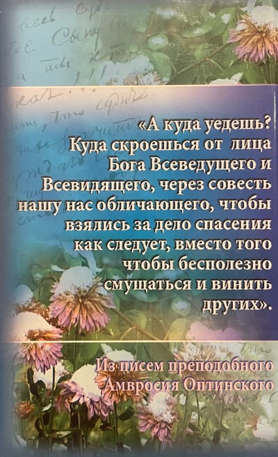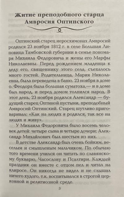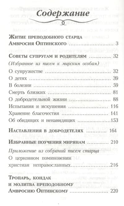 Grāmatā iekļauta viena no slavenākajiem Optinas vecākajiem, ļoti pieredzējuša garīgā tēva, kurš izceļas gan ar pārsteidzošu vienkāršību, gan ar pārsteidzošu dievišķo gudrību - Svētā Optinas Ambrozija - biogrāfija un mācības.