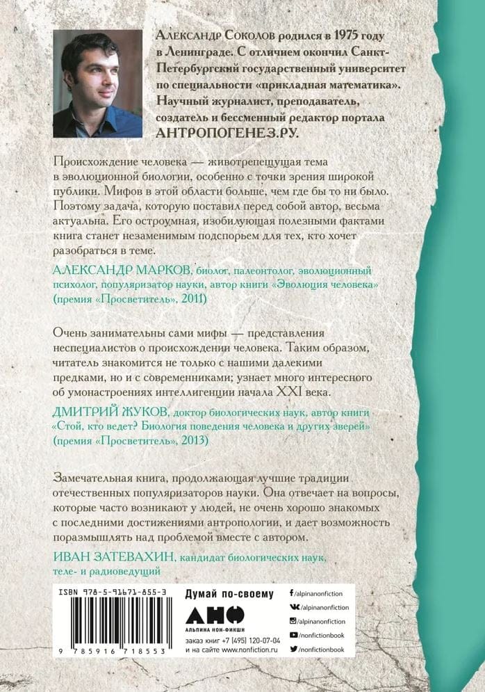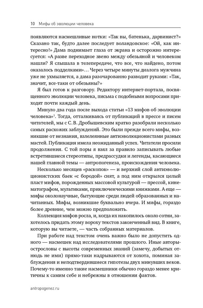 Vai Čārlzs Darvins savas dzīves beigās atteicās no savas cilvēka evolūcijas teorijas? Vai senie cilvēki redzēja dinozaurus? Vai tā ir taisnība, ka Krievija ir cilvēces šūpulis, un kas ir jeti – varbūt viens no mūsu senčiem, kas pazudis gadsimtos? Lai gan paleoantropoloģija, zinātne par cilvēka evolūciju, piedzīvo uzplaukumu, cilvēka izcelsmi joprojām apvij daudzi mīti. Tie ietver antievolucionisma teorijas, populārās kultūras radītās leģendas un pseidozinātniskas idejas, kas pastāv izglītotu un labi lasītu cilvēku vidū. Vai vēlaties uzzināt, kā tas viss notika patiesībā?