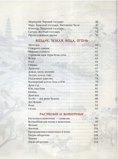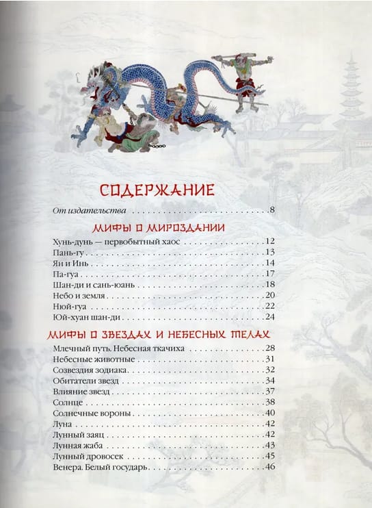 Ko nozīmē mūsdienu pasaulē tik plaši izplatītie simboli Yin un Yang? Kas, pēc ķīniešu domām, apdzīvo zvaigznes un planētas? Kāpēc Ķīnā tik ļoti tiek godināti pūķi? Ko stāsta leģendas par dzīvniekiem, kas pārvērsti par zvēriem, par nemirstīgo salām, par kalnu un ūdeņu gariem? Par to visu un vēl daudz ko citu lasītāji uzzinās no grāmatas, kuras pamatā ir izcilā zinātnieka Sergeja Georgijevska darbs "Ķīniešu mītiskie ticējumi un mīti" (1892), kas izcili atspēkoja viedokli par Ķīnu kā gadsimtiem ilgušu stagnācijas valstību, modinot krievu lasītājos interesi par Debesu impēriju, tās kultūru un iedzīvotājiem. Grāmata ilustrēta ar retiem ķīniešu un japāņu mākslinieku darbiem.
