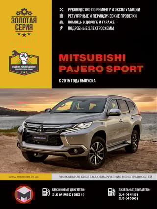 MITSUBISHI PAJERO SPORT kopš 2015. gada. Benzīna dzinēji: 3.0 MIVEC (6B31). Dīzeļdzinēji: 2,4 (4N15), 2,5 (4D56). Remonta un ekspluatācijas rokasgrāmata