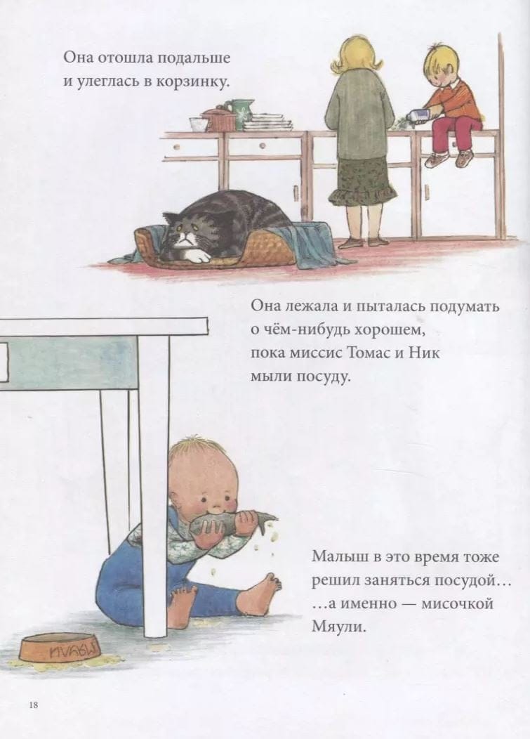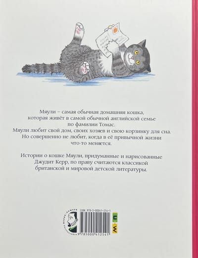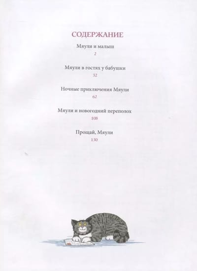 Miauli ir parasts mājas kaķis, kas dzīvo parastā angļu ģimenē vārdā Tomass. Miauli ir ļoti mīļa, bet ne pārāk gudra, tāpēc viņa bieži iekuļas stāstos, kas, par laimi Miauli un viņas gādīgajiem saimniekiem, vienmēr beidzas labi. Stāstus par kaķi Mūliju ir izdomājusi un zīmējusi angļu māksliniece Džūdita Kerra, un jau gandrīz 50 gadus tie ir iekarojuši ne tikai britu, bet arī lasītāju sirdis visā pasaulē un kļuvuši par atzītu bērnu literatūras klasiku. Arī mūsu lasītāji ir paspējuši iemīlēt Mūliju, jo septiņi stāsti par viņu jau ir izdoti krievu valodā gan kā atsevišķas grāmatas, gan kā daļa no krājuma "Mūlija. Stāsti no pārsteidzošas kaķenes dzīves". Un tagad krājumam krievu valodā ir pievienoti četri jauni stāsti par Mūli - īsta dāvana visiem Džūditas Kerras daiļrades cienītājiem! Krājums "Meowly. Jauni stāsti no pārsteidzošā kaķa dzīves" iekļauti šādi stāsti: 1. "Mūlijs un mazulis" 2. "Mūlijs pie vecmāmiņas" (pirmo reizi krievu valodā) 3. "Mūlija nakts piedzīvojumi" (pirmo reizi krievu valodā) 4. "Mūlijs un Jaungada nepatikšanas" (pirmo reizi krievu valodā) 5. "Labdien, Mūlijs" (pirmo reizi krievu valodā) Visi bez izņēmuma stāsti par kaķi Mūliju - interesanti, asprātīgi un ļoti mīļi. Tos labprāt pārlasa daudzas reizes un uz visiem laikiem atstāj mājas bibliotēkā. Tajos ir aptuveni vienādas teksta un ilustrāciju daļas, tāpēc bērniem, kuri sāk lasīt, stāsti par Mūli bieži vien ir pirmās grāmatas, kuras viņi ir spējuši patstāvīgi izlasīt no sākuma līdz beigām.