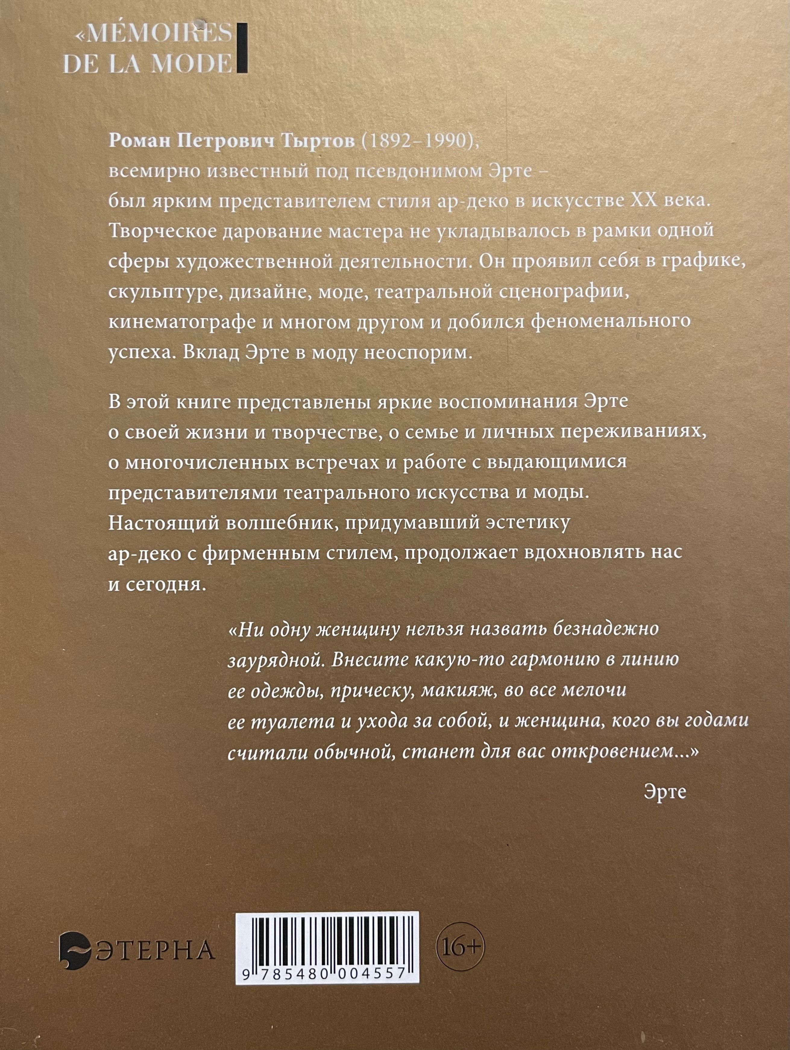 Šī grāmata piedāvā Ertē spilgtas atmiņas par viņa dzīvi un darbu, ģimenes un personīgo pieredzi, kā arī daudzajām tikšanās reizēm un sadarbību ar ievērojamām personām teātra un modes industrijā. Īsts burvis ar savu raksturīgo stilu, viņš bija Art Deco estētikas pionieris un turpina mūs iedvesmot arī šodien.