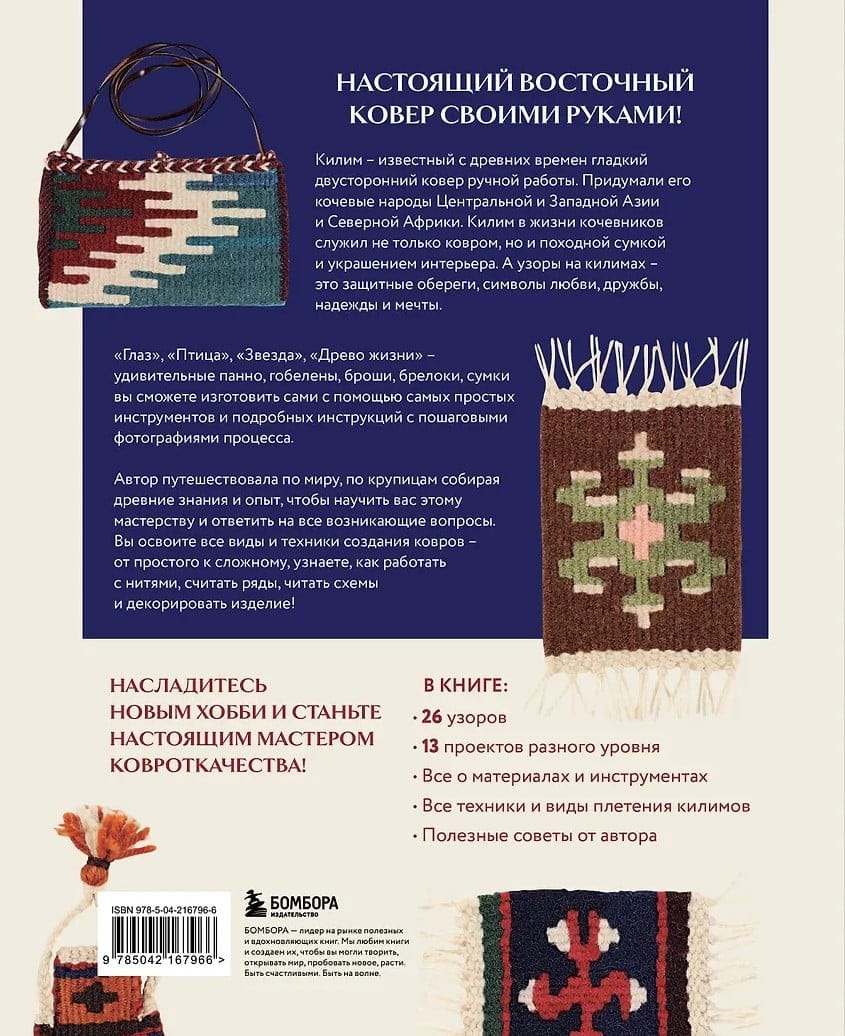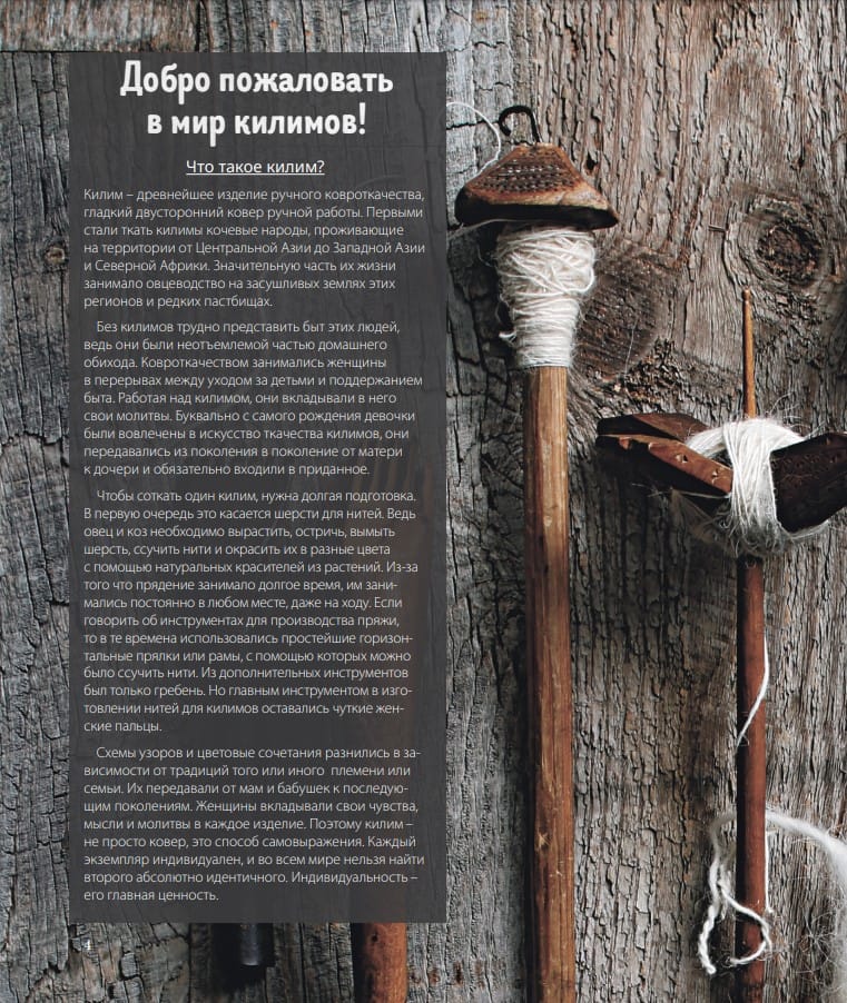 Atklājiet seno kilim aušanas mākslu — austrumu paklāju, kura katrs raksts slēpj dziļu nozīmi un vēsturi. Šī grāmata iemācīs jums, kā ar rokām aust unikālus paklājus un rotaslietas — bez īpaša aprīkojuma vai sarežģītiem instrumentiem.