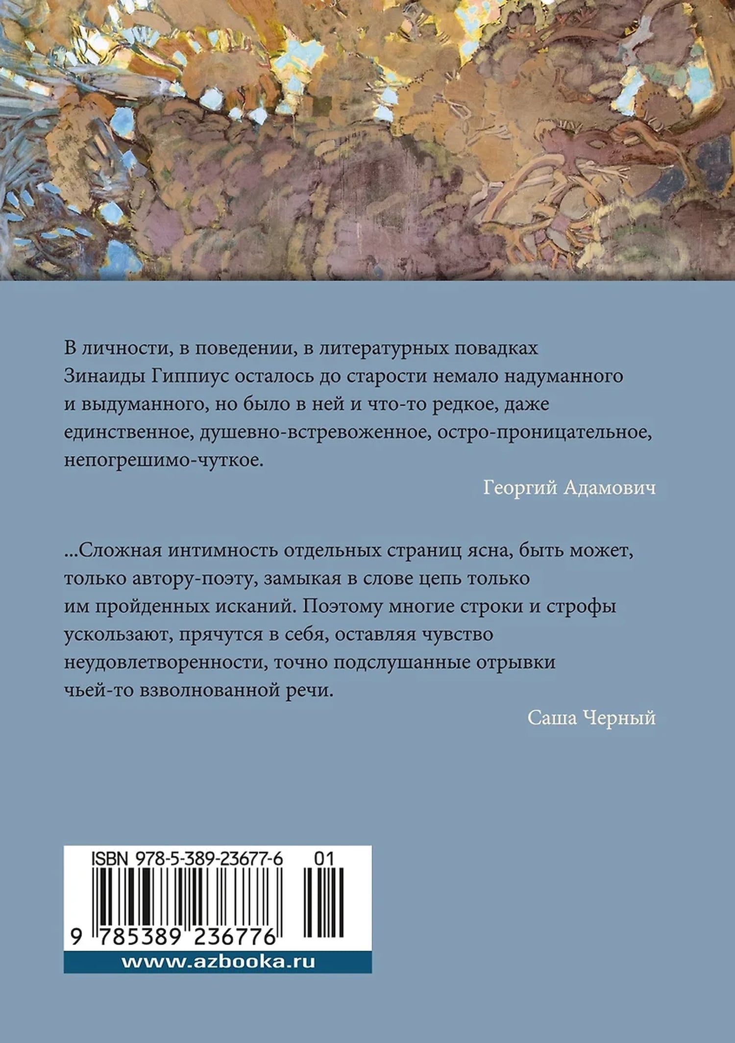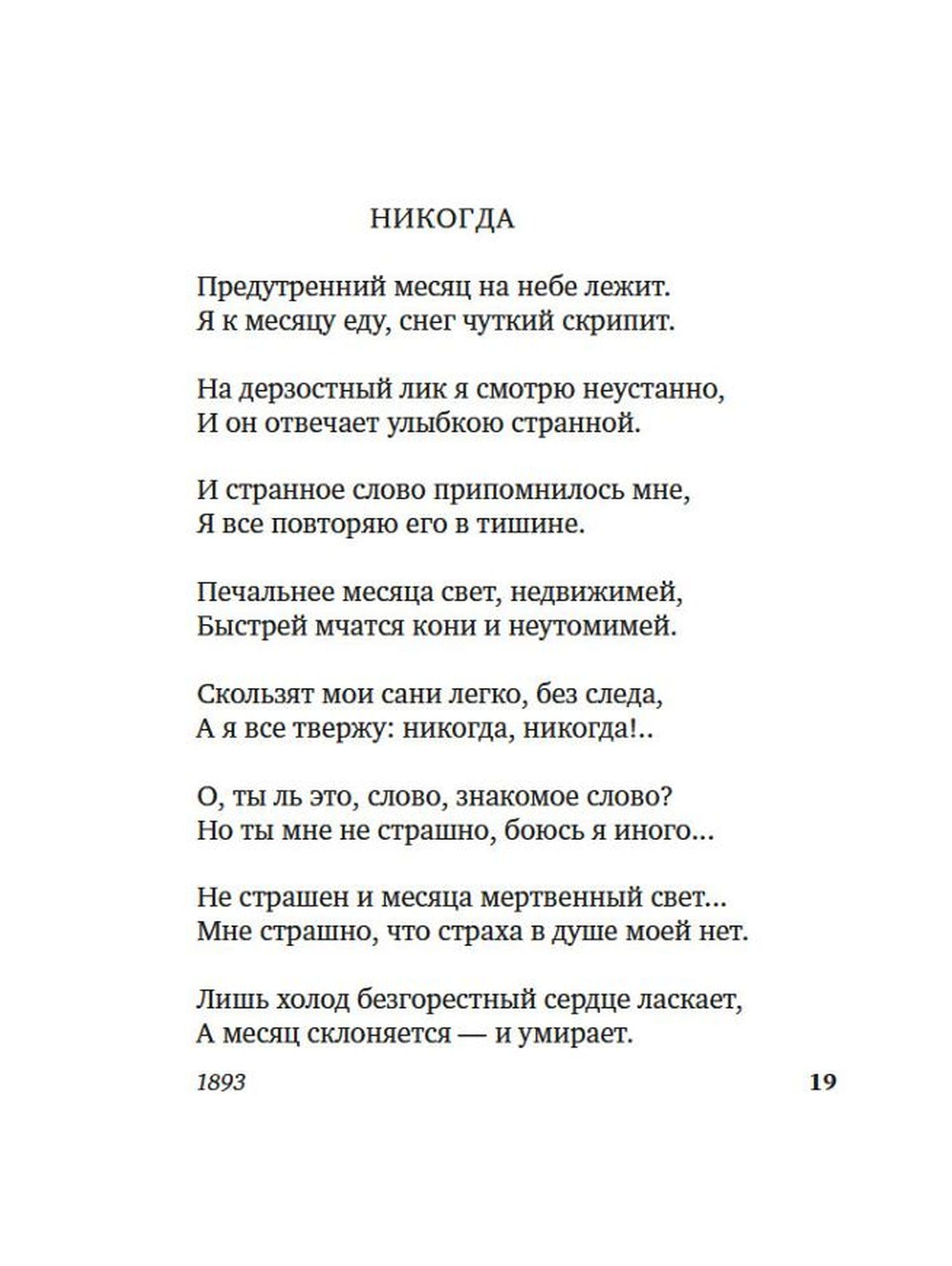 Visbiežāk kopā ar savu slaveno vīru Dmitriju Merežkovski atceras sudraba laikmeta ekstravaganto skaistumu Zinaidu Nikolaevnu Gipiusu (1869—1945). Daudzējādā ziņā tās ir neatdalāmas. Pāris papildināja, iedvesmoja un provocēja viens otru dzīvē un radošumā. Taču būtu nepareizi uzskatīt Hipius par mūzu šajā savienībā. XX gadsimta sākuma Krievijas literārajās aprindās Zinaidai Nikolajevnai bija ļoti svarīga un neatkarīga loma: viņa aktīvi publicēja prozu, žurnālistiku, darbojās kā kritiķe. Dzejoļi, ko viņa pati uzrakstīja, „tikai tad, kad nevarēja palīdzēt rakstīt", lai tos varētu uzskatīt par sava veida poētisko dienasgrāmatu, tverot daudz pieredzējušas, neparastas, spožas sievietes, apdāvinātas dzejnieces domas un jūtas. . .