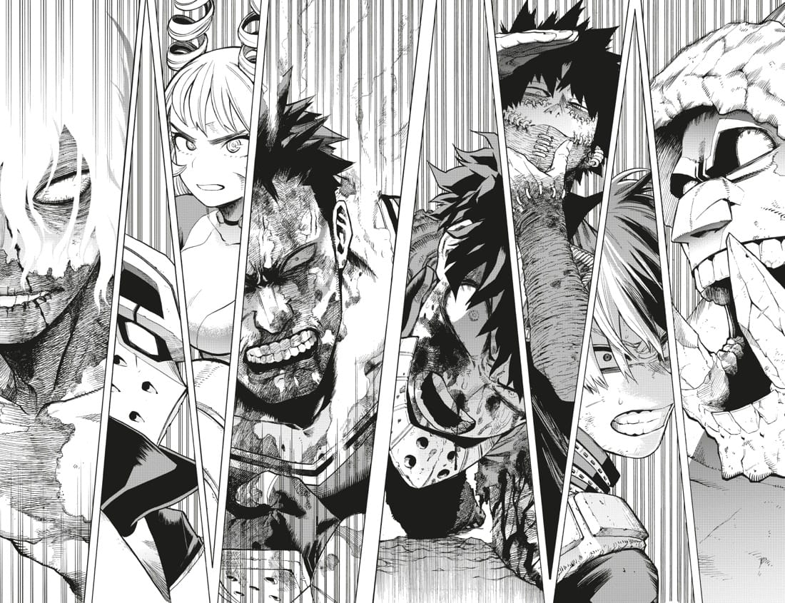 Pretēji Gran Torino brīdinājumam, Midorija tomēr steidzas palīgā skolotājam Aizavai, kurš savaldīja Šigaraki ar savas dīvainības spēku. Savukārt Juejas akadēmijas studenti cenšas apturēt Mahiju, kurš steidzas pēc sava skolotāja aicinājuma. Daži profesionāļi jau ir izgājuši no ierindas, tāpēc jaunajiem varoņiem ir grūts uzdevums: ievietot ļaundarim mutē anestēzijas kapsulu un palikt dzīviem. Lielā cīņa ir pilnā sparā... Kurš izkļūs no tās kā uzvarētājs? Piecpadsmitā grāmata ietver 277.-295. nodaļu.