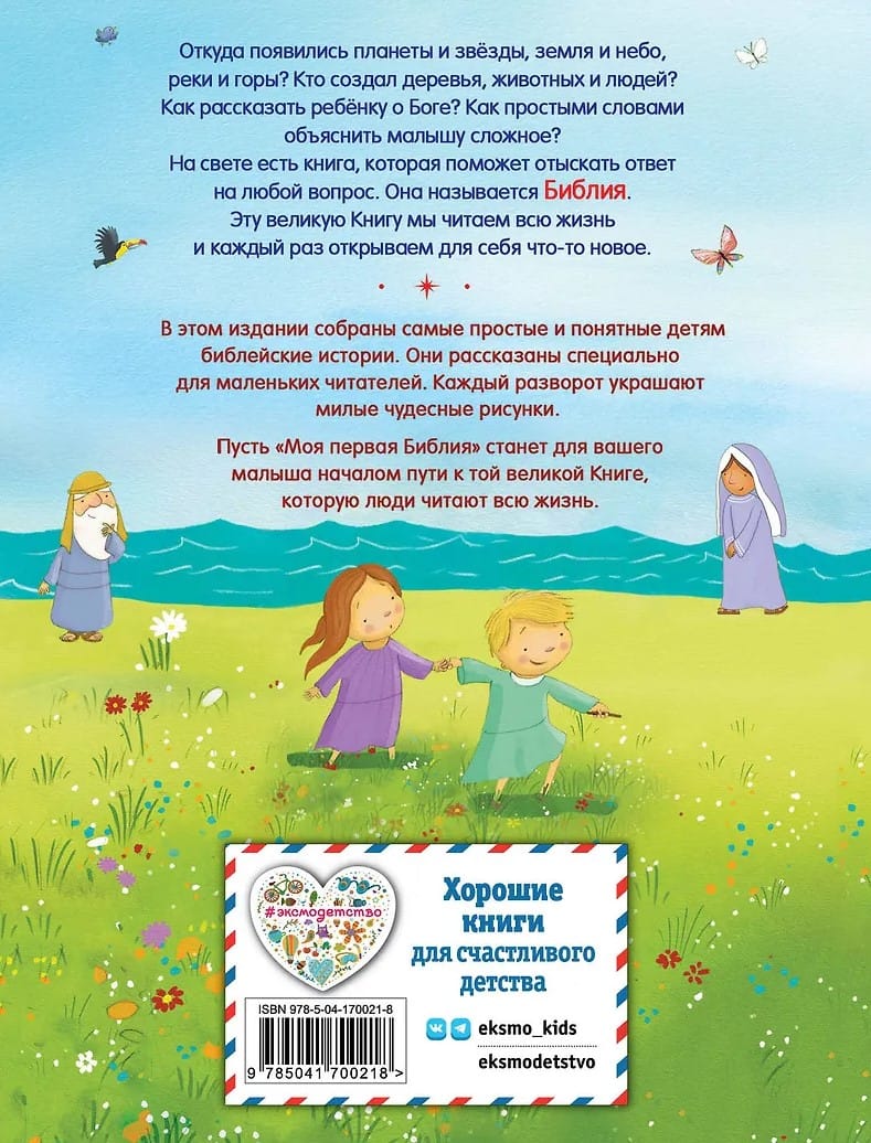 Bībeles stāsti ir pasniegti kodolīgi, viegli un maziem bērniem saprotami. Grāmata ir iespiesta uz bieza, balta papīra un ir ērta bērnu pirkstiņiem.