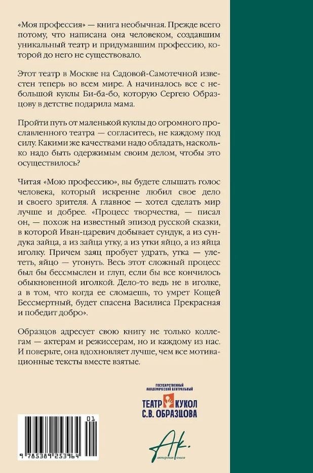 “Mana profesija” ir neparasta grāmata. Pirmkārt, tāpēc, ka to sarakstījis cilvēks, kurš radījis unikālu teātri un izgudrojis profesiju, kādas pirms viņa nebija.