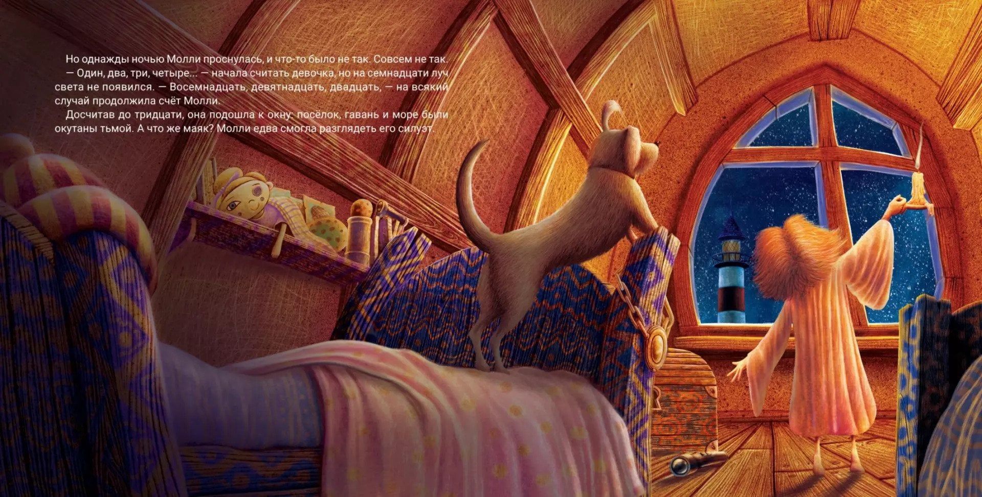 Mollija pamostas nakts vidū un saprot, ka kaut kas nav kārtībā. Kaut kas nav kārtībā. Bāka aiz viņas loga ir pārstājusi spīdēt! Viņas tētis ir devies nakts makšķerēšanā ar saviem draugiem mazā sarkanā laivā. Kā tagad bez bākas gaismas viņi atradīs drošu ceļu atpakaļ uz ostu? Molijai jāmēģina bāku atkal iedarbināt. Un tas jādara pēc iespējas ātrāk! "Mollija un bāka" - trešā grāmata stāstu sērijā par meiteni no zvejas salas pēc "Mollija un vētrainā jūra" un "Mollija un valis". Tas ir dramatisks un aizkustinošs stāsts par drosmi, apņēmību un mīlestību.
