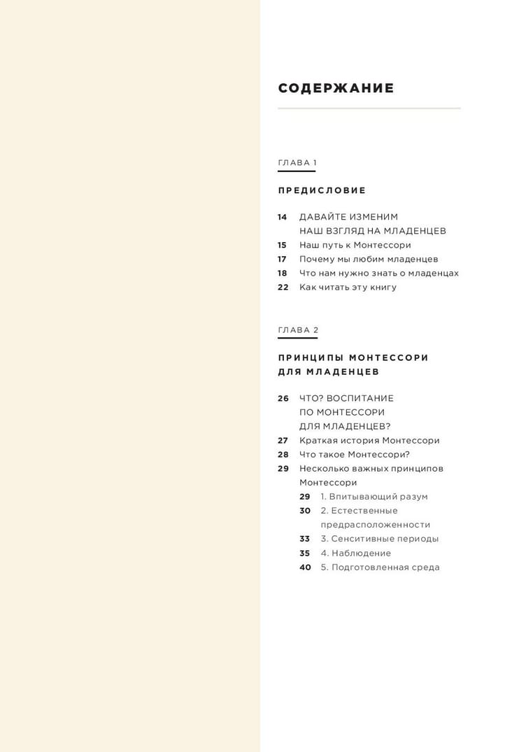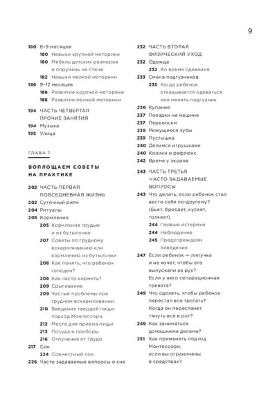 Pateicoties šai grāmatai, jūs: — sagatavosieties vecākiem fiziski, emocionāli, intelektuāli un garīgi; — kļūsiet par aktīvu novērotāju un sapratīsiet, ko bērns patiesībā vēlas; — organizēsiet aktivitātes, kas palīdzēs bērnam attīstīties viņam ērtā tempā; — izveidosiet savās mājās Montesori telpu, "jā" telpu, kurā nekas nav aizliegts; — izaudzināsiet bērnu, kurš jūtas droši un ir gatavs ar pārliecību iepazīt pasauli.