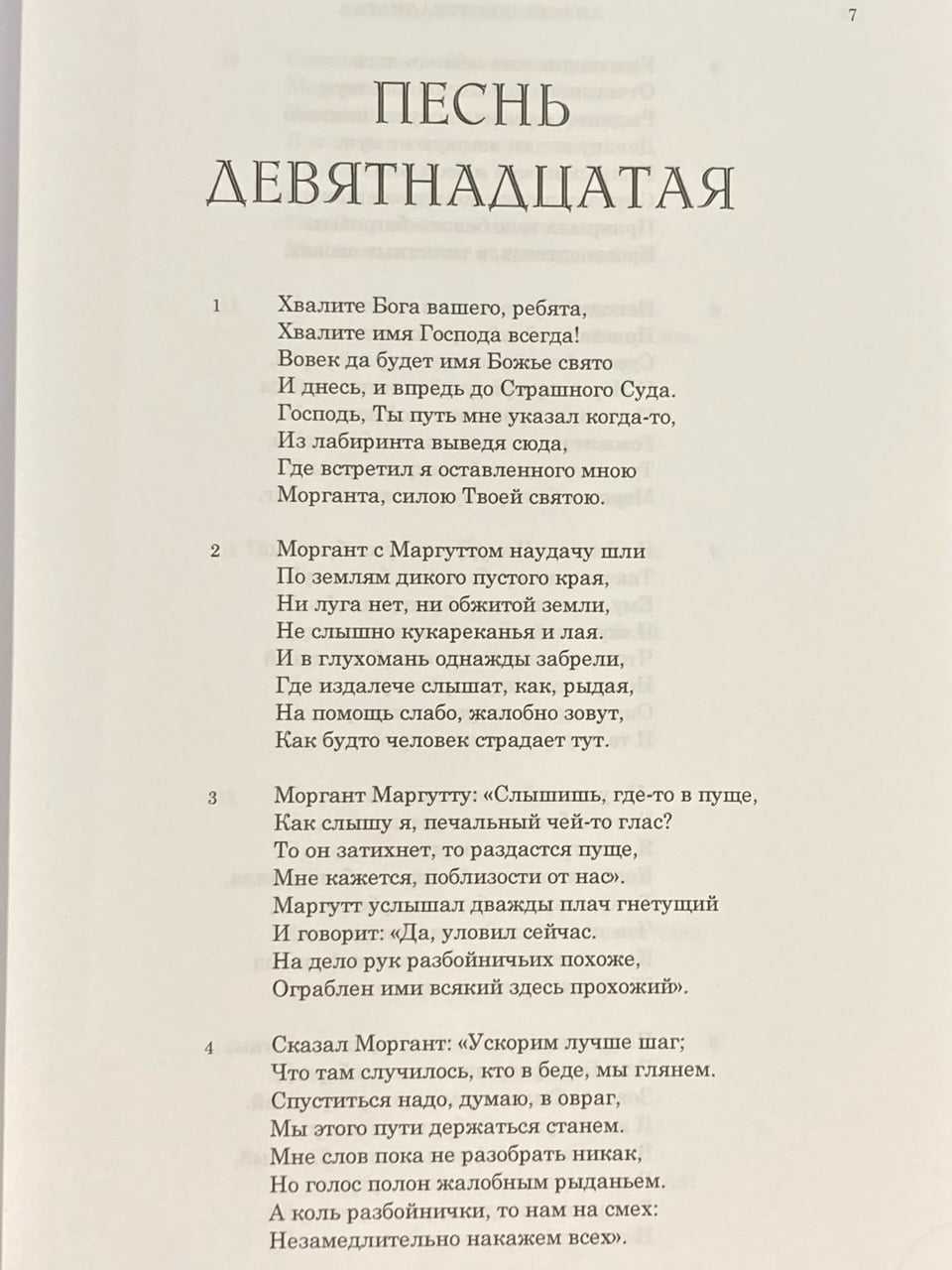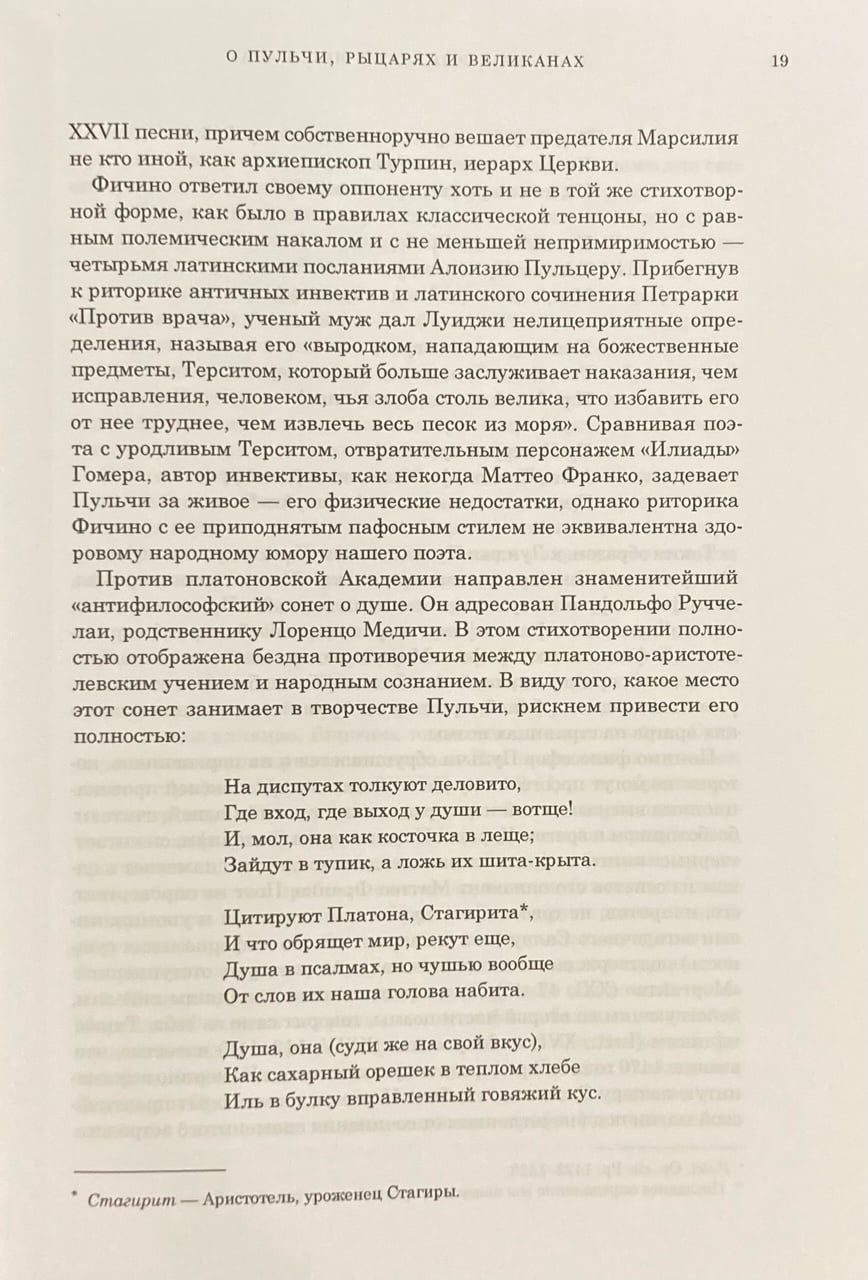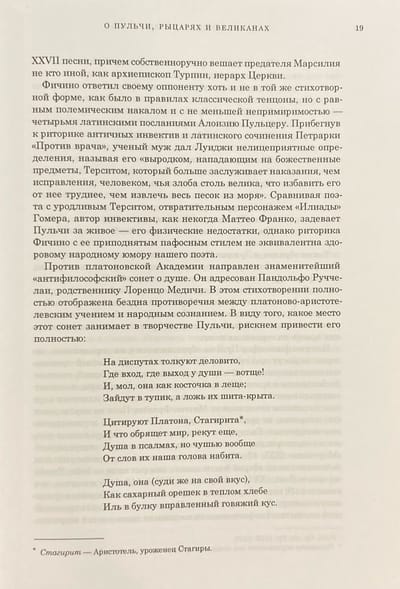 Trīs gadsimtus "Morgants" vadīja bagātīgu piedzīvojumu bruņinieku dzejoļu tradīciju komiksu plānā, ietekmējot renesanses klasiķus, tai skaitā Rabelais un Baironu. Dzejoli pirmo reizi pārtulkojis krievu valodā, pilnā un izmērā. Izdevumam pievienots raksts un plašs komentārs, kas ilustrēts ar XVI gs. pirmās puses retiem gravējumiem. Plašam lasītāju lokam interesē itāļu literatūras un episkās dzejas vēsture kopumā.