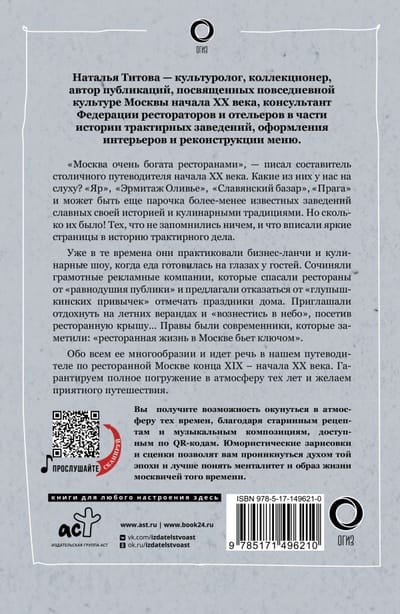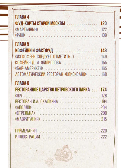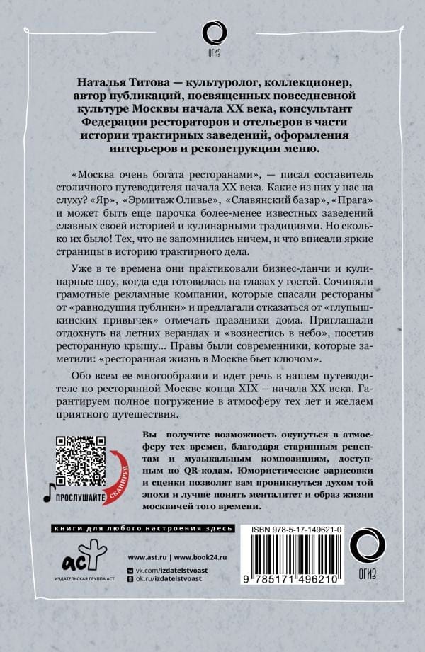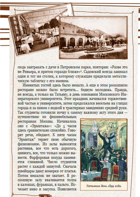 Jūs uzzināsiet par krodziņu daudzveidību un to īpatnībām, kā arī iegūsiet iespēju iegremdēties tā laika atmosfērā, pateicoties senajām receptēm un muzikālajām kompozīcijām, kas pieejamas ar QR kodiem. Humoristiskas skices un ainiņas ļaus iejusties tā laikmeta garā un labāk izprast tā laika maskaviešu mentalitāti un dzīvesveidu.