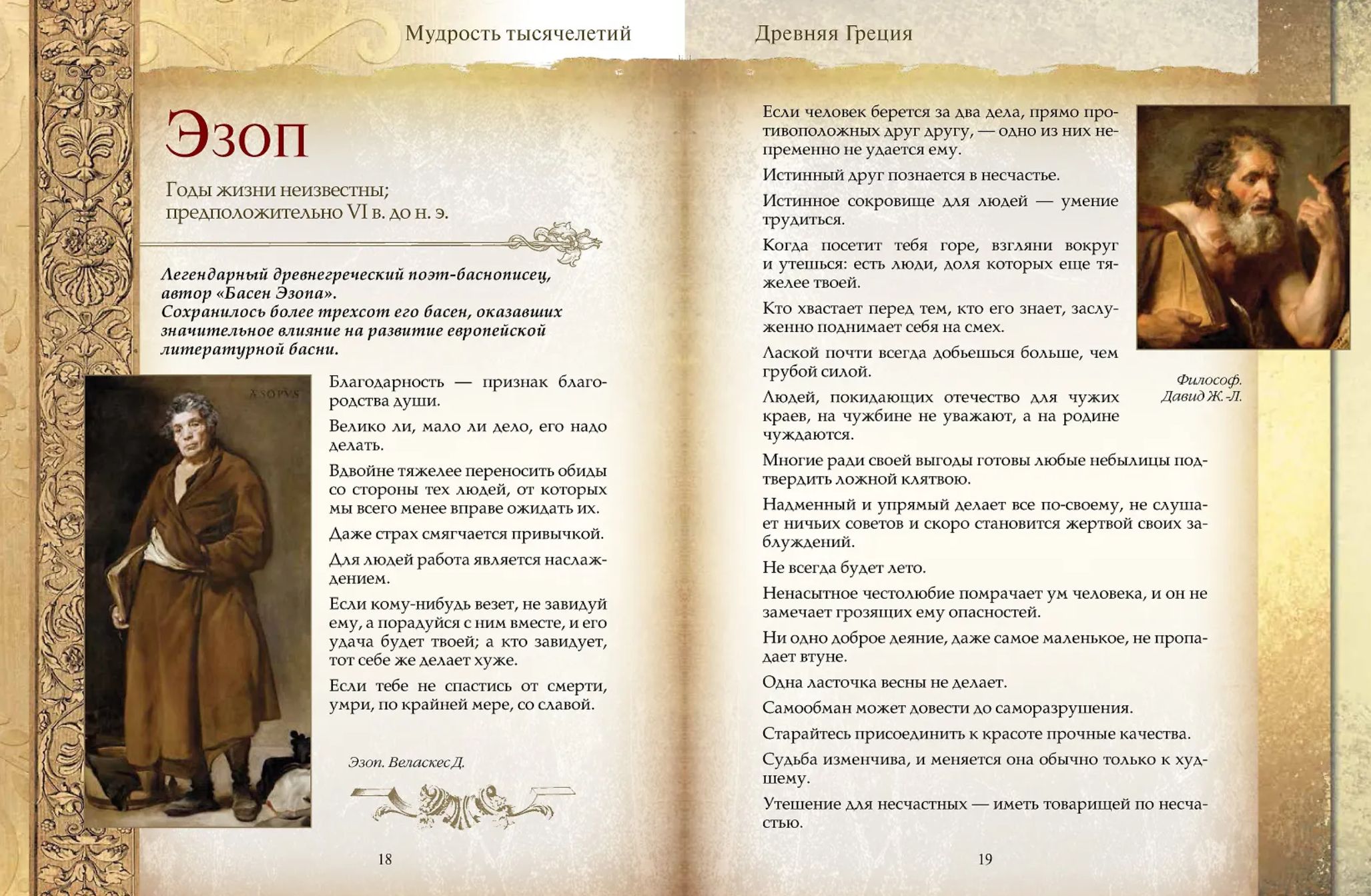 Grāmatā "Tūkstošgades gudrība" ir apkopoti labākie teicieni, aforismi, teicieni un citāti no izciliem pagātnes domātājiem, filozofiem, rakstniekiem, dzejniekiem, valstsvīriem un reliģiskajām personībām. Par katru autoru ir sniegta īsa pamatinformācija, kas sniedz ieskatu viņu lomā globālās sociālās domas attīstībā. Krājumā ir gudrības pērles no plaša cilvēces vēstures perioda: no 12. gadsimta pirms mūsu ēras līdz 19. gadsimtam pēc mūsu ēras. Materiāls ir sakārtots pa laikmetiem un valstīm. Aforismi atspoguļo idejas par cilvēces kultūras un civilizācijas pamatvērtībām un morālajām vērtībām. Šī grāmata ir adresēta ikvienam, kuru interesē filozofijas, zinātnes un literatūras vēsture. Lasītāji piedzīvos aizraujošu un pamācošu ceļojumu cauri gadsimtiem kopā ar visu laiku un tautu izcilākajām personībām.