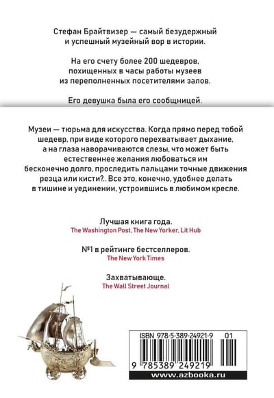 Līdz 2002. gadam Stefāns Breitwiser bija atradis kaut ko tādu, ko nekad nebija vēlējies: augsta līmeņa Eiropas slavu. Prese cyingly skaitījās pasakains kaitējumu, ko drosmīgs nolaupītājs izraisīja muzejiem. Pārsteidzošā zādzības metode, milzīgais zagto šedevru saraksts, heartbreaking denouement un ar to saistītā muzeja drošības prasību globālā pārskatīšana ir skaidri apliecinājusi: Stefana Breitwisera (Stefan Breitwiser) vārds – sērijveida zaglis, kurš nekad nav izmantojis vardarbību vai pārdevis vienu zagtu lietu, – tagad ir lemts, lai gūtu augstāko vērtējumu par visaugstākajiem noziegumiem mākslas jomā.