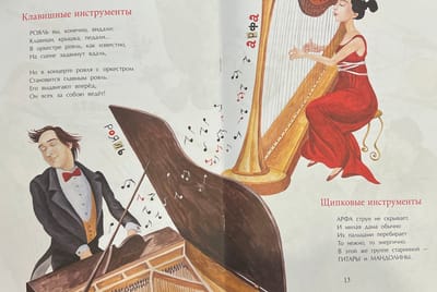 Rimmas Petrovnas Aldoninas neliela mūzikas enciklopēdija dzejā, kas iepazīstina mazos lasītājus ar dažiem simfoniskā orķestra instrumentiem. Katram no tiem veltītas skaidras, precīzas, atmiņā paliekošas dzejas raksturojums un neparasti izteiksmīgi zīmējumi, kas ļauj ieraudzīt ne tikai konkrētus instrumentus, bet arī mūziķus - izpildītājus, un iegremdē mazos lasītājus mūzikas stihijā, lielā orķestra dzīvē.