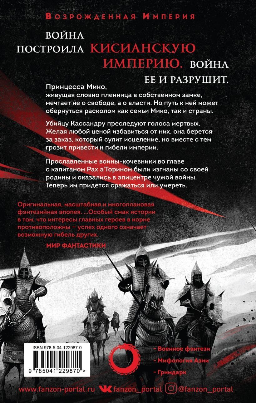 Karš uzcēla Ķīrijas impēriju. Karš to sagraus. Septiņpadsmit gadus pēc sacelšanās Kisijas impērija ir vienota tikai ar Dieva-imperatora stingru roku. Taču nodevība sagrauj nestabilo aliansi ar Čilteju, un viss izcīnītais sabrūk. Princese Miko sapņo ieņemt troni, taču ceļš uz varu var uz visiem laikiem šķelt viņas dzimtu. Čiltejā Kasandru Mariju vajā mirušo balsis. Izmisums spiež viņu noslēgt darījumu, kas sola izārstēt. Uz tautu robežas kapteinis Rah e'Torins un viņa atstumtie karotāji ir spiesti cīnīties svešā karā. Kamēr impērija iet bojā, trīs karavīri paceļas. Viņiem nāksies pārvarēt vētru vai noslīkt izlietajās asinīs.