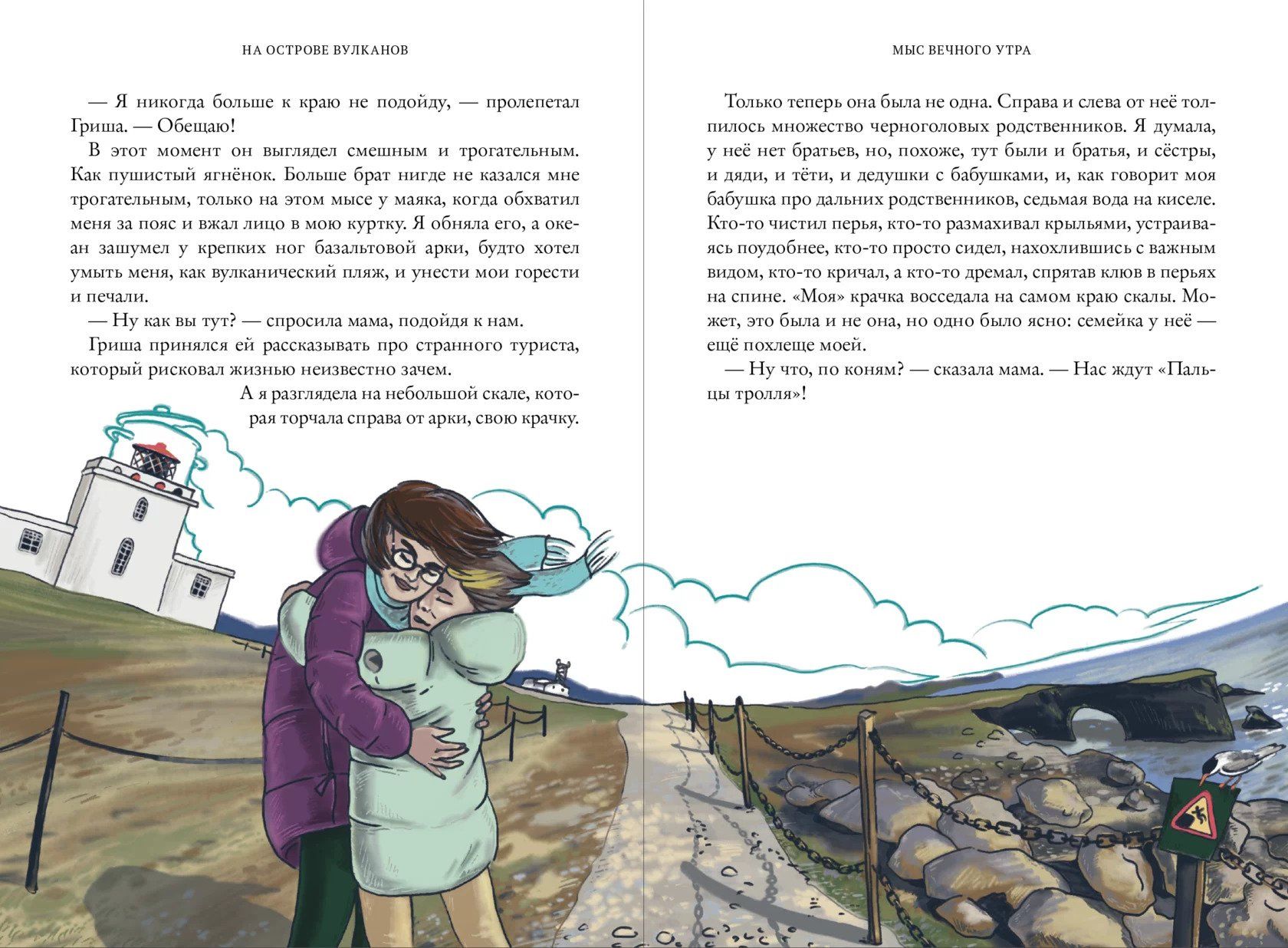 Kāds ir ģimenes ceļojums? Skaļš, jautrs, enerģisks, jautrs! Ja nu tas ir ģimenes ceļojums uz salu, kur var atrast vairāk nekā simt vulkānu? Un ja uz ceļa iet Maša, kurš mīl kārtību un kazas, jokdaris Griša, kurš vienmēr nokļūst nepatikšanās, stingrs tētis un māte-rakstītāja? Kāds būs šis ceļojums? Viena lieta ir skaidra: tas nebūs garlaicīgi. Ģimene ienirt pasaulē vikingiem, garša vulkānisko maizi, apbrīnot vaļu muzejā un mirušajiem beidzas atklātā jūrā, tikties ūdenskritumi un geizeri, peldēties karstā atsperēm, uzzināt nosaukumu dažu rūnu, nopirkt āmuru Thor un pat noslēgt līgumu ar elfiem! Ne viss iet perfekti: bērni un pieaugušie strīdēties un samierināties, aizvainot un priecāties. Galvenais atradums, kas sagaida Mašu, Grišu un viņu vecākus vulkānu salā, ir ģimenes atbalsta un mīlestības sajūta.