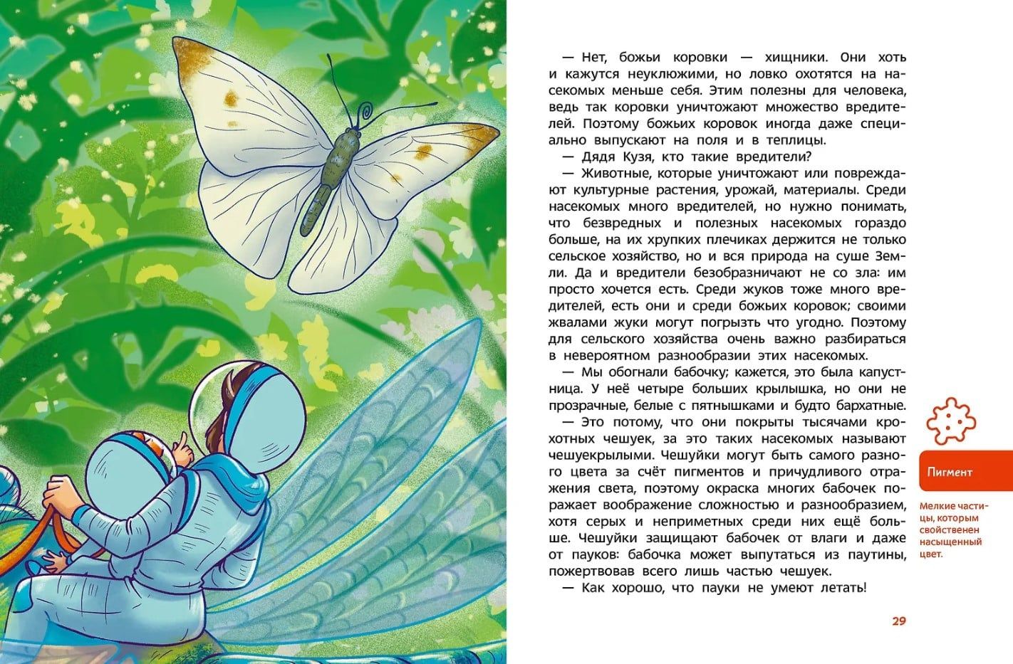 Bērni uzzinās, kāpēc cikādes zīdaiņa vecums ilgst 17 gadus, kāpēc kāpuri iemācās skudru "valodu" un kurš zirneklis maskējas par ziedu. Viņi arī uzzinās, kā viens skudru pūznis aizsargā mežu futbola laukuma lielumā. Un kāpēc bez kukaiņiem pasaulē nebūtu daudz iemīļotu lietu — no zīda līdz medus piparkūkām.