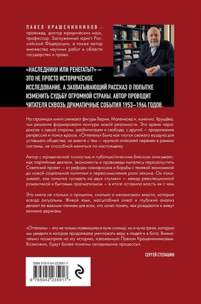 Vai šis negaidītais fakts bija Hruščova vadības kļūdu rezultāts vai neizbēgami vēsturiski modeļi? Tieši to mēs centīsimies izprast. Grāmatā ir arī esejas par tā laika ievērojamiem tiesību zinātniekiem un sarežģītās likumdošanas kodifikāciju, kas mantota no Ļeņina un Staļina laikmetiem.