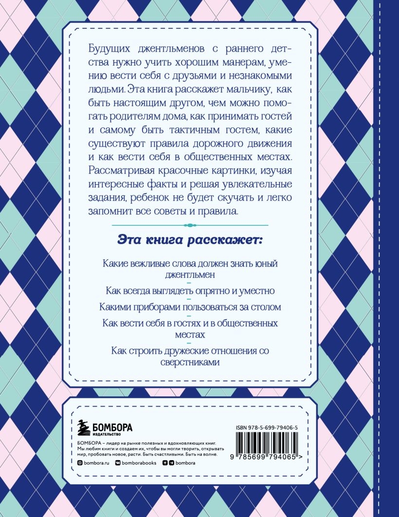 Nākamajiem džentlmeņiem jau no agras bērnības vajadzētu mācīt labas manieres un to, kā izturēties pret draugiem un svešiniekiem. Šī grāmata pastāstīs zēnam, kā būt īstam draugam, kā palīdzēt vecākiem mājās, kā uzņemt viesus un būt taktiskajam viesim, kādi ir ceļu satiksmes noteikumi un kā uzvesties sabiedriskās vietās. Aplūkojot krāsainus attēlus, uzzinot interesantus faktus un risinot aizraujošus uzdevumus, bērnam nebūs garlaicīgi un viņš viegli atcerēsies visus padomus un noteikumus.