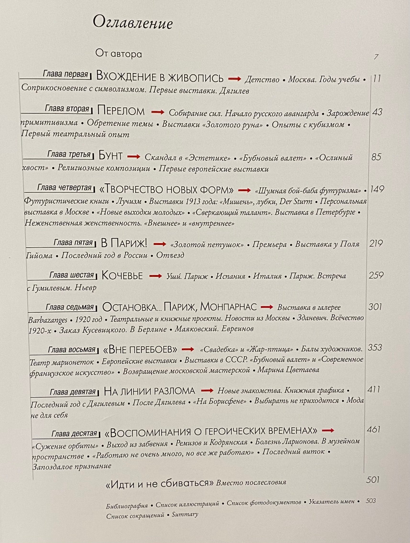 Grāmata ir veltīta Natālijai Sergejevnai Gončarovai (1881–1962), vienai no spilgtākajām un interesantākajām 20. gadsimta māksliniecēm. Krievu un Rietumu mākslas kritikā diezgan labi izpētīts Gončarovas daiļrades krievu periods, ko raksturo drosmīgi mākslinieciski atklājumi un darbības, kas viņai izpelnījās “nenogurstošās modernistes” slavu. Parīzes periods, kas ilga gandrīz piecdesmit gadus, neskatoties uz daudzajām publikācijām, joprojām ir pārpilns ar tukšām vietām un rada daudz problēmu pētniekiem. Grāmatas autore, balstoties uz dokumentāliem materiāliem no Parīzes Gončarovas un Larionova arhīva, laikabiedru sarakstēm un memuāriem, kā arī atbildes presē, mēģina atjaunot pilnīgu priekšstatu par mākslinieka dzīvi un darbu.