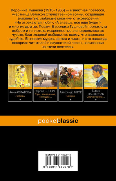 Veronika Tušnova ir slavena dzejniece, Lielā Tēvijas kara dalībniece, kura radīja dzejoļus, kas bija pazīstami visiem un daudziem mīļiem: „Viņi neatsakās no mīlestības, „Zini, būs vēl!” un daudzi citi. Veronikas Tušnovas dzejā valda laipnība un sirsnība, jūtu autentiskums, pateicīga mīlestība pret visu, ko piešķir liktenis. Viņas dzeja ir gudra, spilgta un tīra, un tas uz visiem laikiem iekaroja dzejnieka dzejoļos rakstīto dziesmu lasītājus un klausītājus.