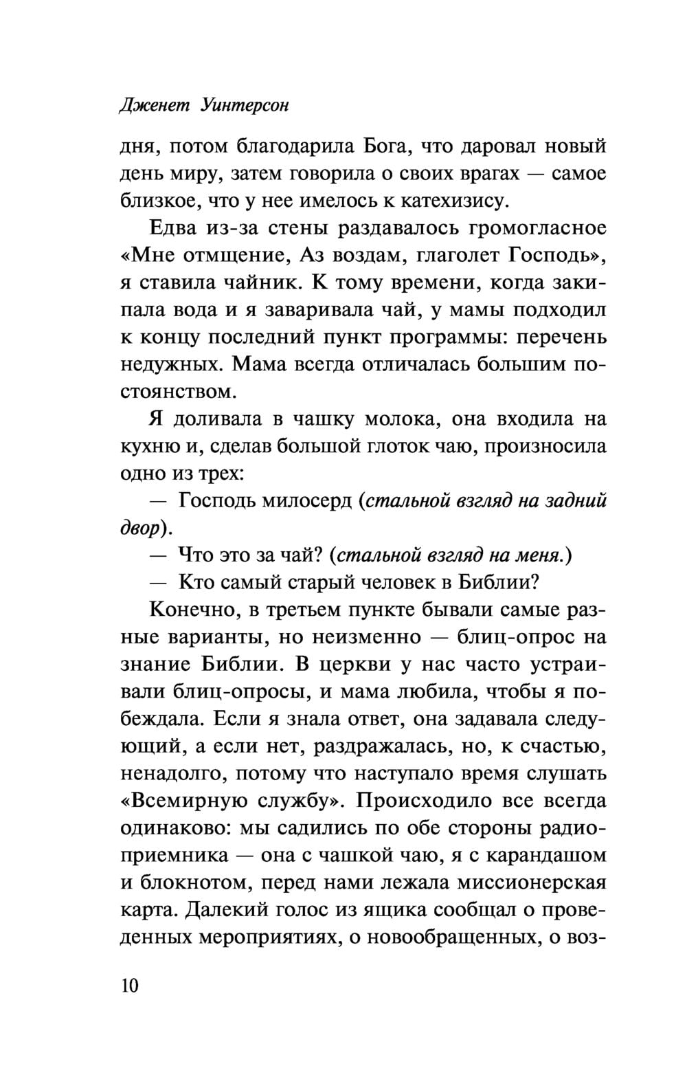 Dzīvespriecīgās un inteliģentās Dženetas bērnība un jaunība paiet nebeidzamu sprediķu, reliģisku svētku un dvēseli glābjošu sarunu gaisotnē. Meitene ar entuziasmu piedalās kopienas misionāru aktivitātēs, taču neviļus atzīmē, ka viņas “tikumīgie” vecāki un kaimiņi Kristus mācību interpretē ļoti savdabīgi. Ar katru dienu viņai kļūst arvien grūtāk samierināties ar liekulību un liekulību, kas plaukst viņas vidē. Taču kādu dienu atnāk mīlestība... un iznīcina visu, pēc kā viņa ir dzīvojusi līdz šim – ģimeni, karjeru, ticību Dievam un ticību cilvēkiem. Taču brūk arī viņas mazās kopienas sienas, aiz kurām paveras liela, dzīva reāla pasaule...